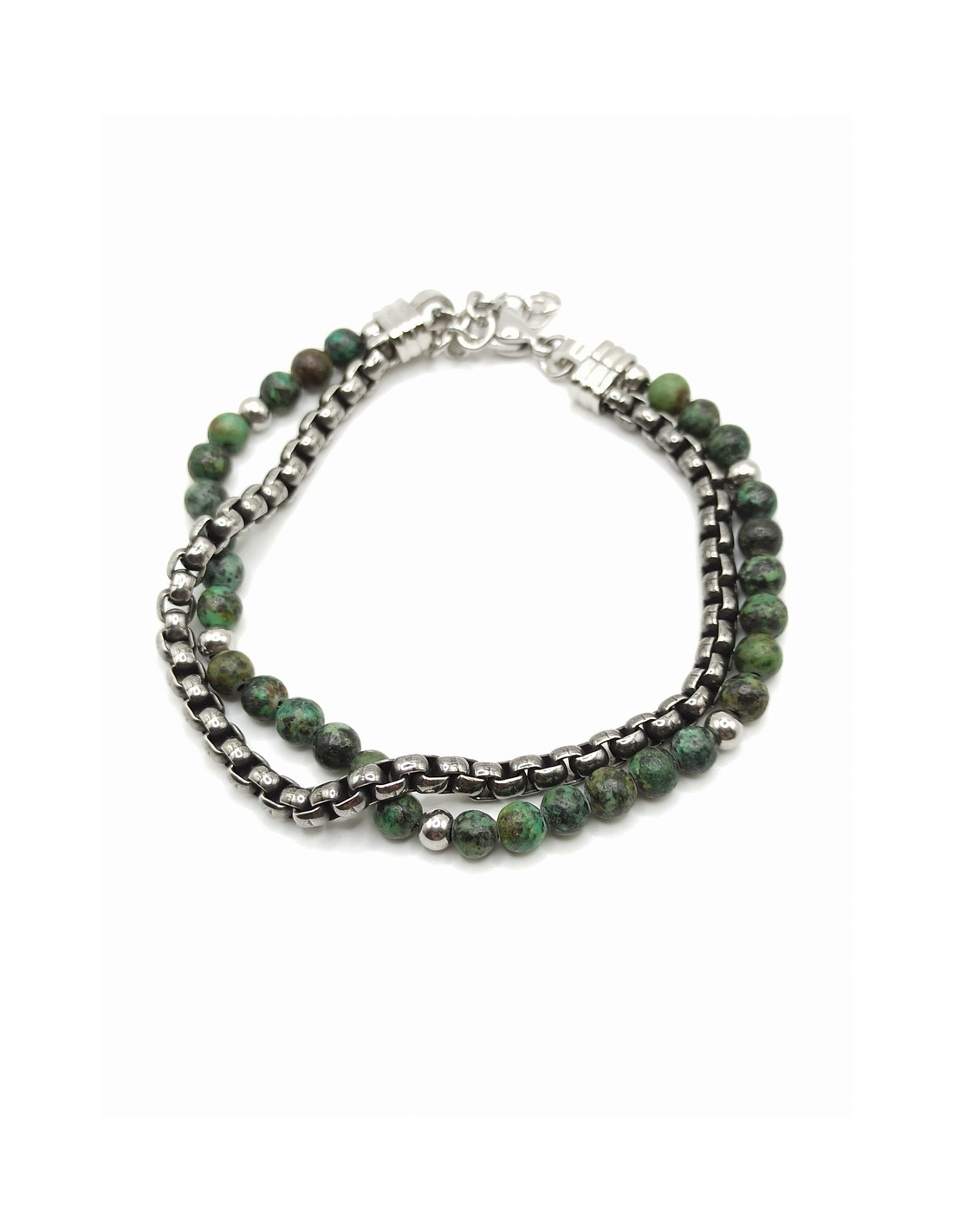 Ανδρικό ατσάλινο βραχιόλι σε μαύρο-γκρι χρώμα με υφή υφάσματος.