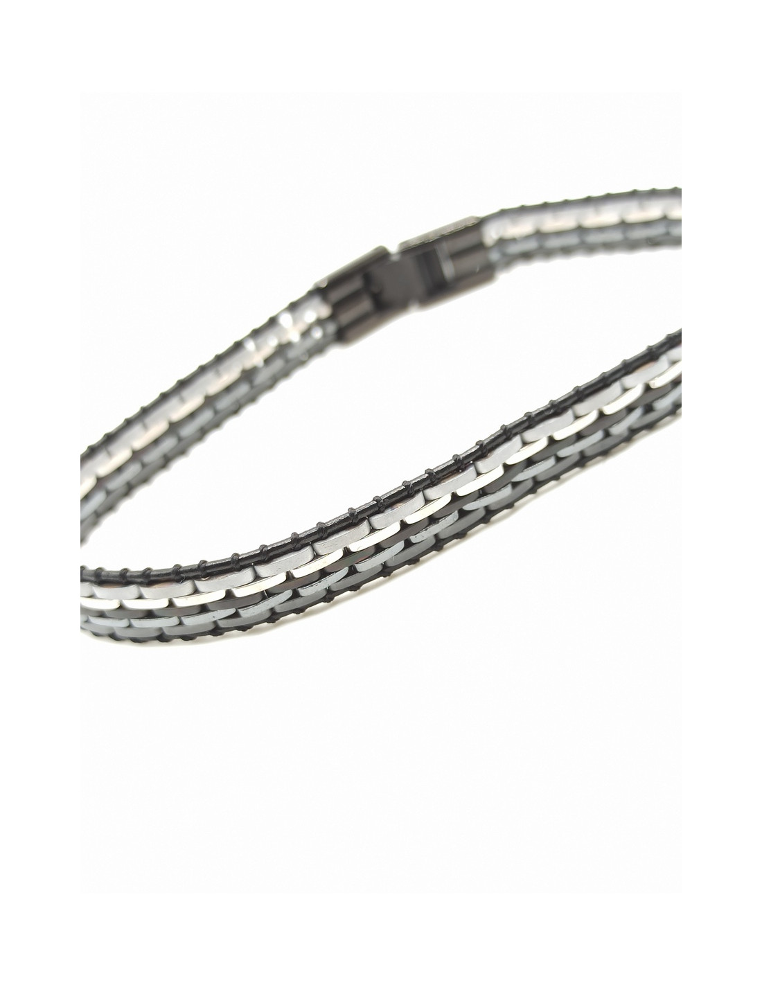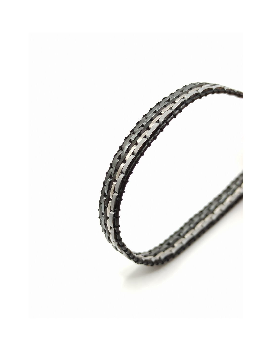 Ανδρικό ατσάλινο βραχιόλι σε μαύρο-γκρι χρώμα με υφή υφάσματος.