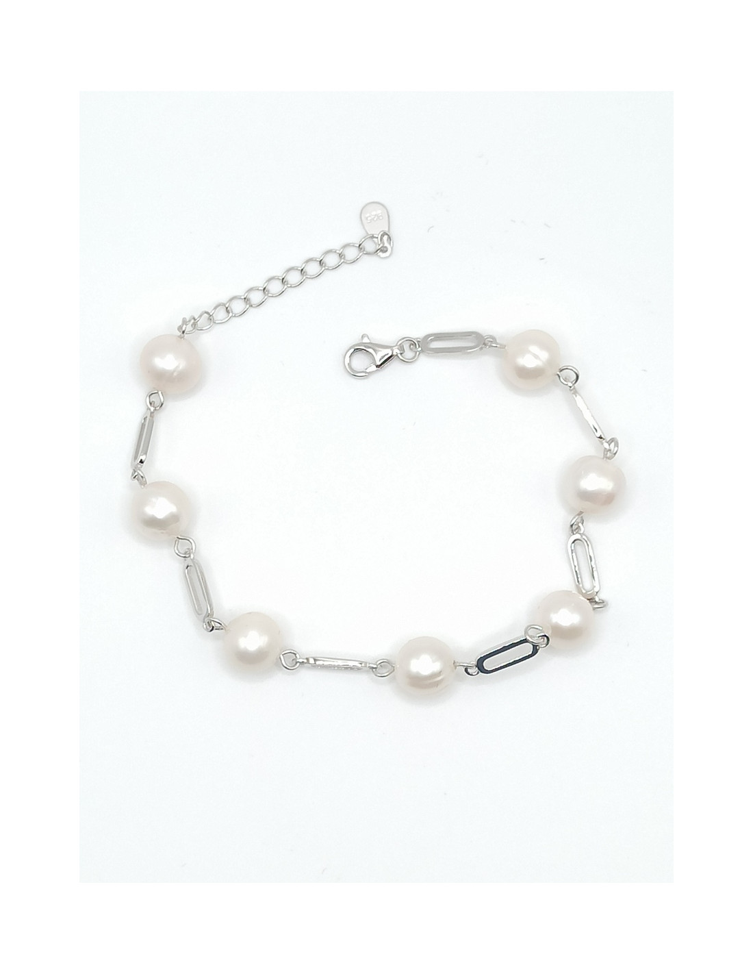 Υπέροχο επιπλατινωμένο βραχιόλι από ασήμι 925 με μαργαριτάρια.