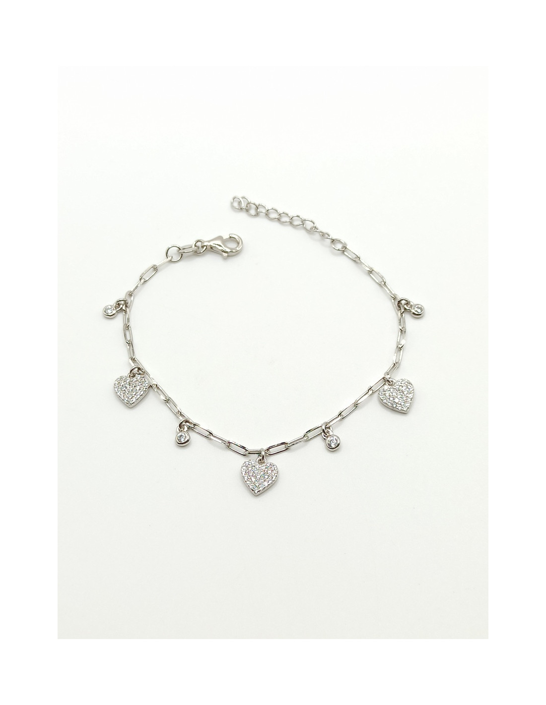 Υπέροχο επιπλατινωμένο βραχιόλι από ασήμι 925 με καρδιές από ζιργκόν.
