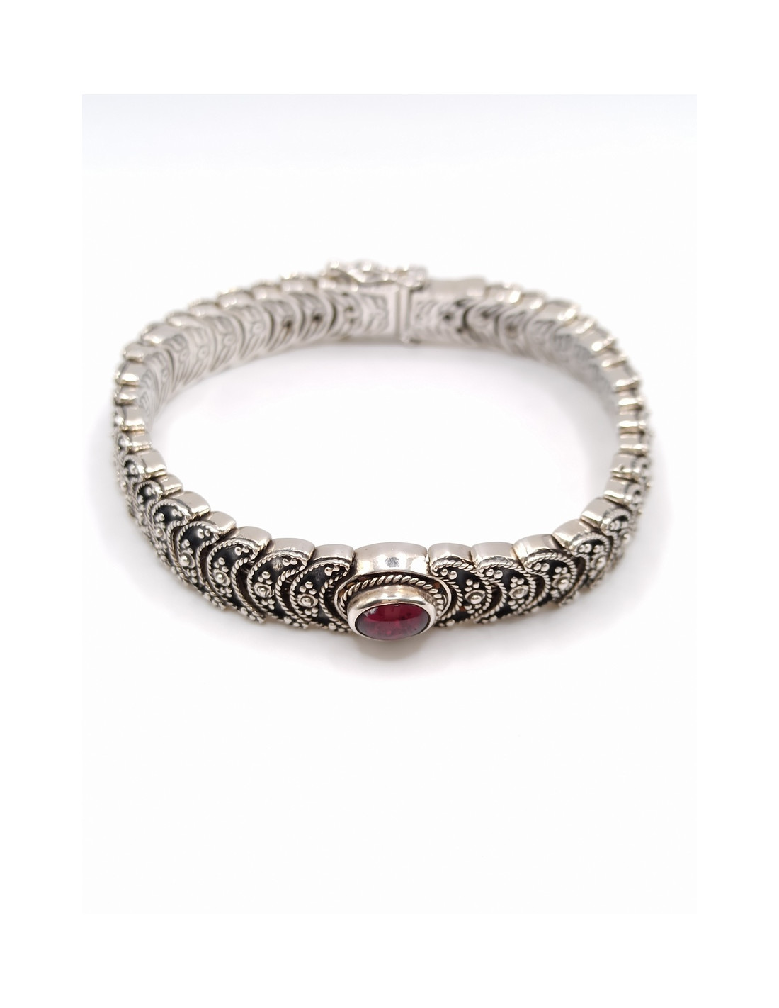 Ασημένιο χειροποίητο βραχιόλι "Savati", αντίγραφο μουσείου. Στο κέντρο έχει μία γρανάδα.