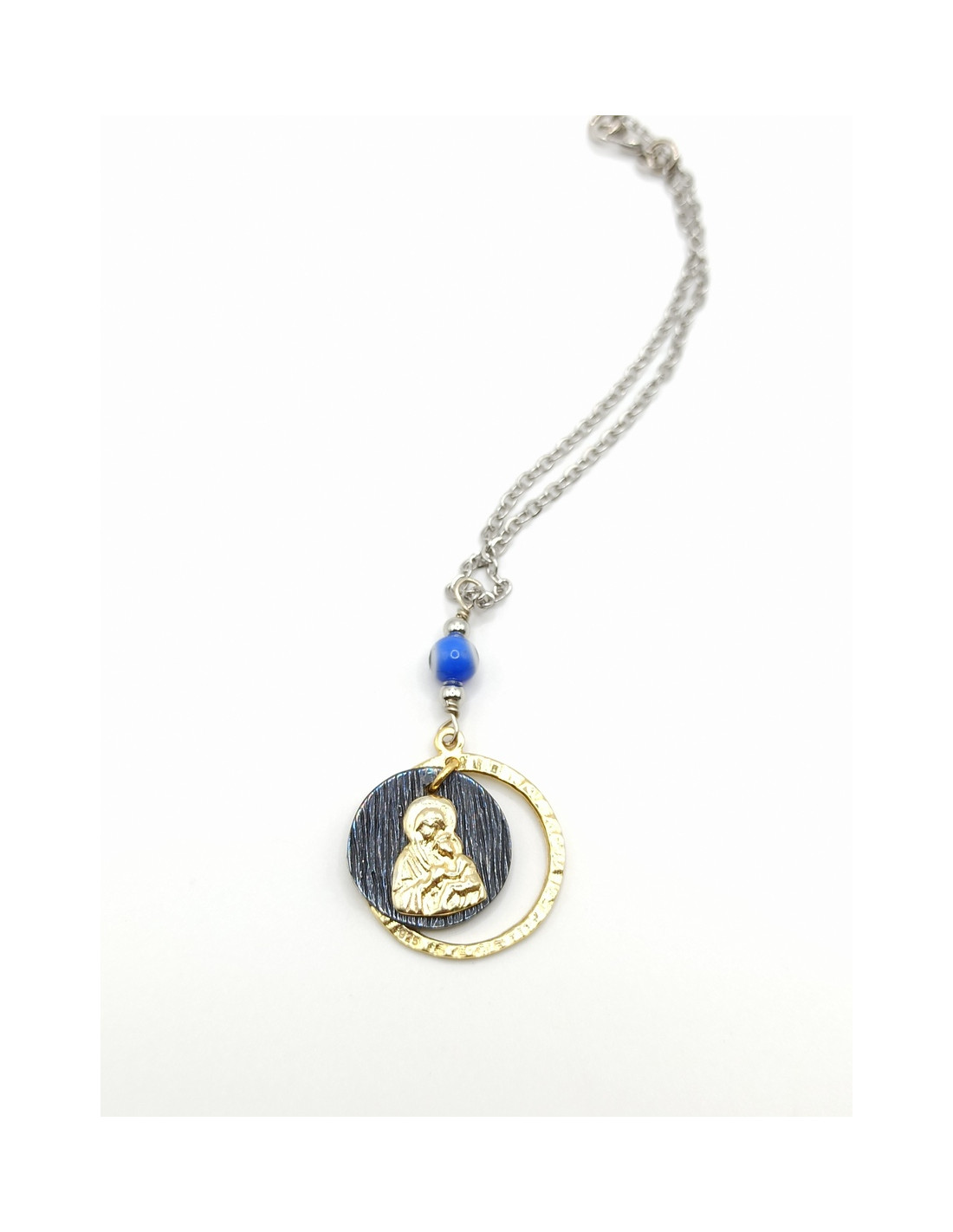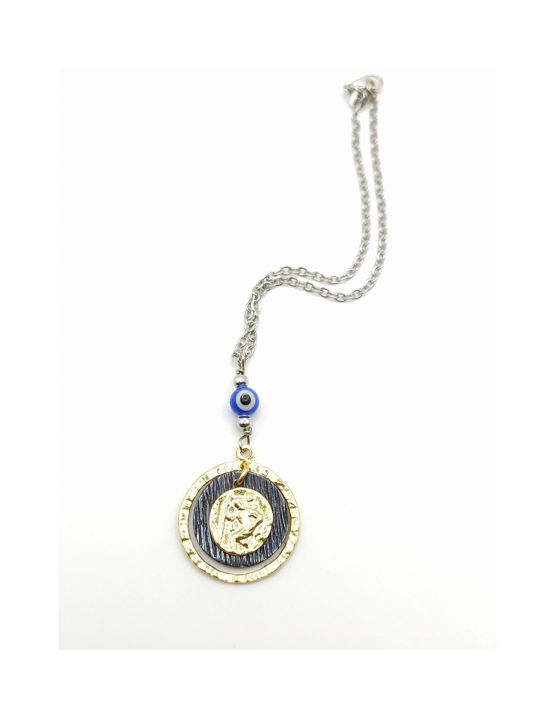 Γούρι αυτοκινήτου ασημένιο 925 διπλής όψεως. Από την μία πλευρά απεικονίζει τον Άγιο Χριστόφορο, προστάτη των οδηγών και από την άλλη την Παναγία.
