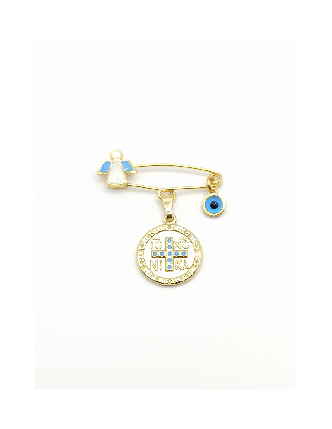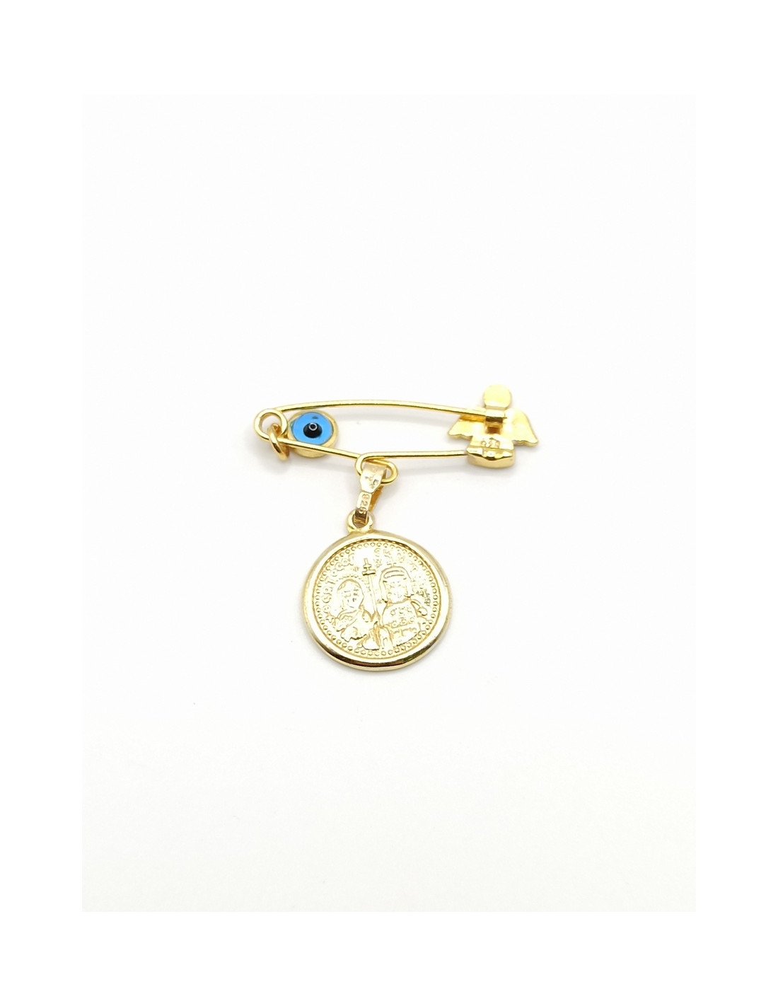 Ασημένιο επιχρυσωμένο παιδικό φυλαχτό Κωνσταντινάτο με λεπτομέρειες από σμάλτο.