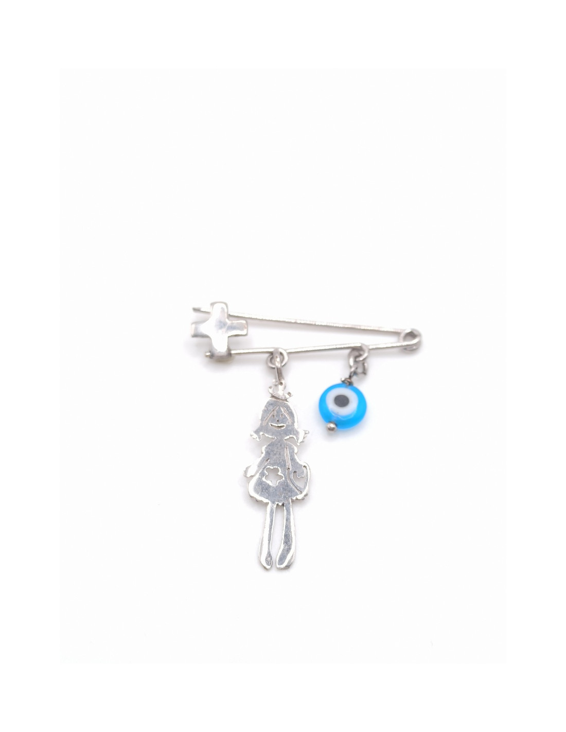 Ασημένιο επιχρυσωμένο παιδικό φυλαχτό Κωνσταντινάτο με παραμάνα και ροζ ματάκι.