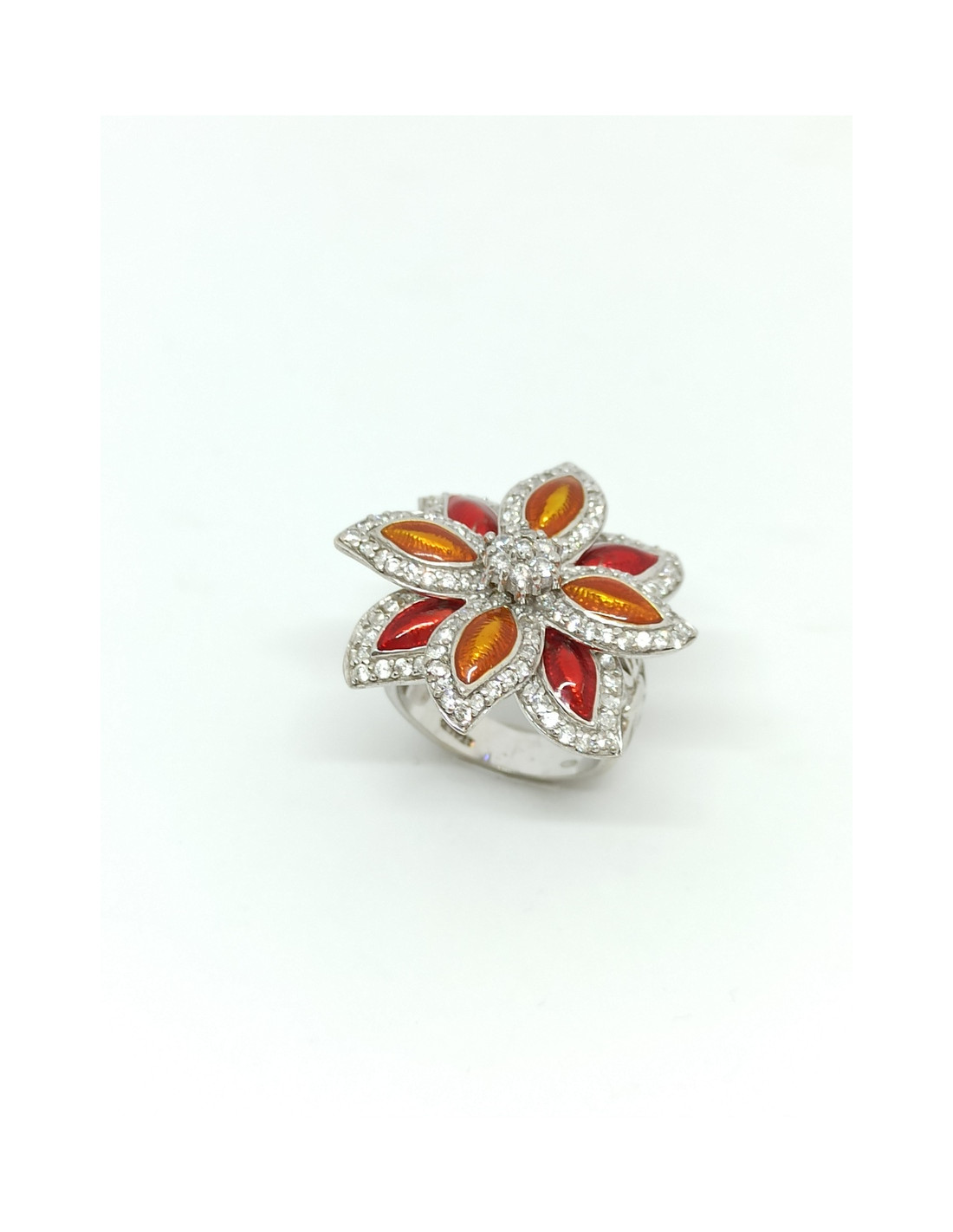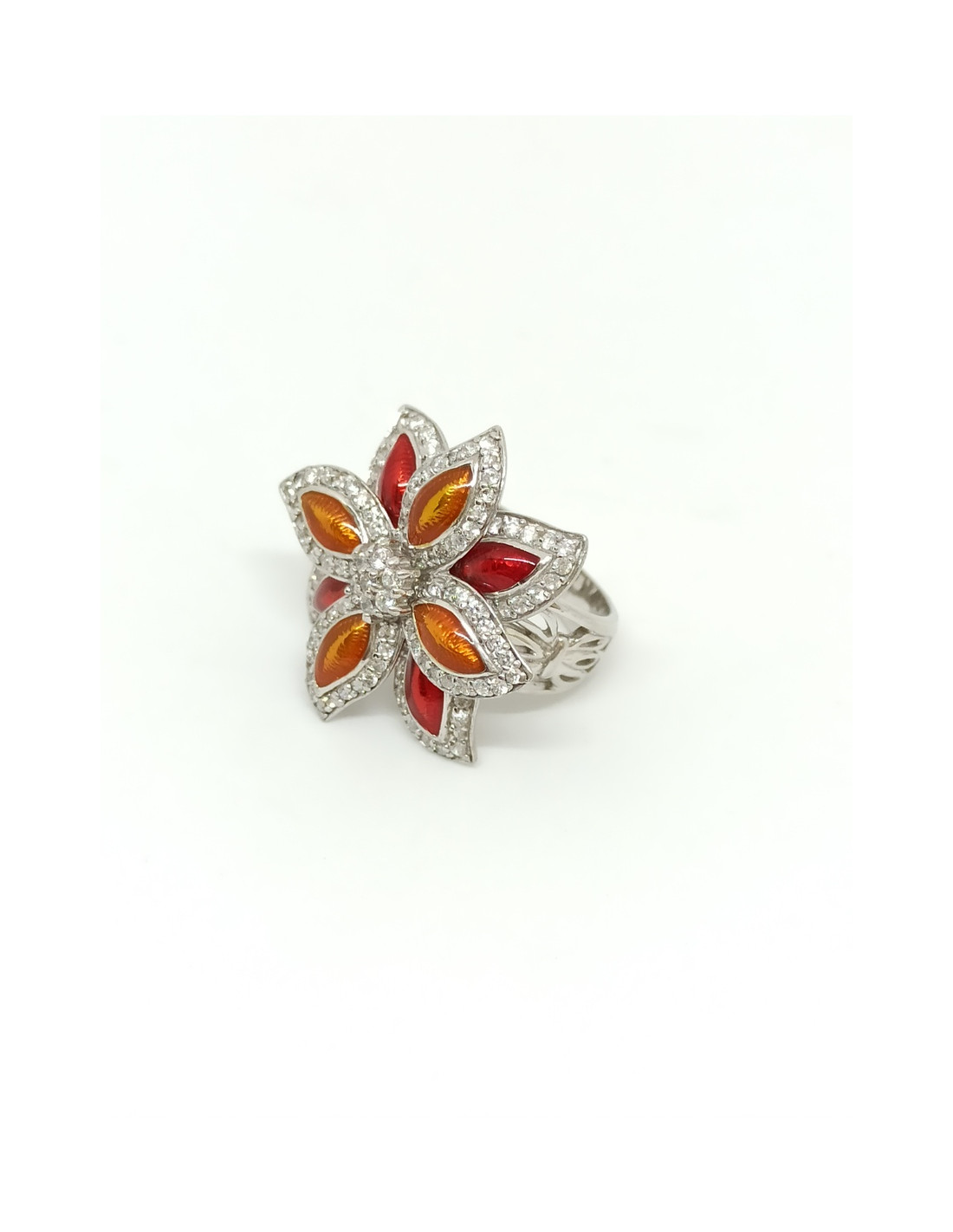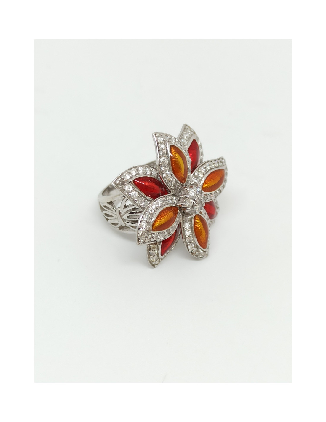 Ασημένιο χειροποίητο δαχτυλίδι, επιπλατινωμένο με φίλντισι και μαύρο σμάλτο.