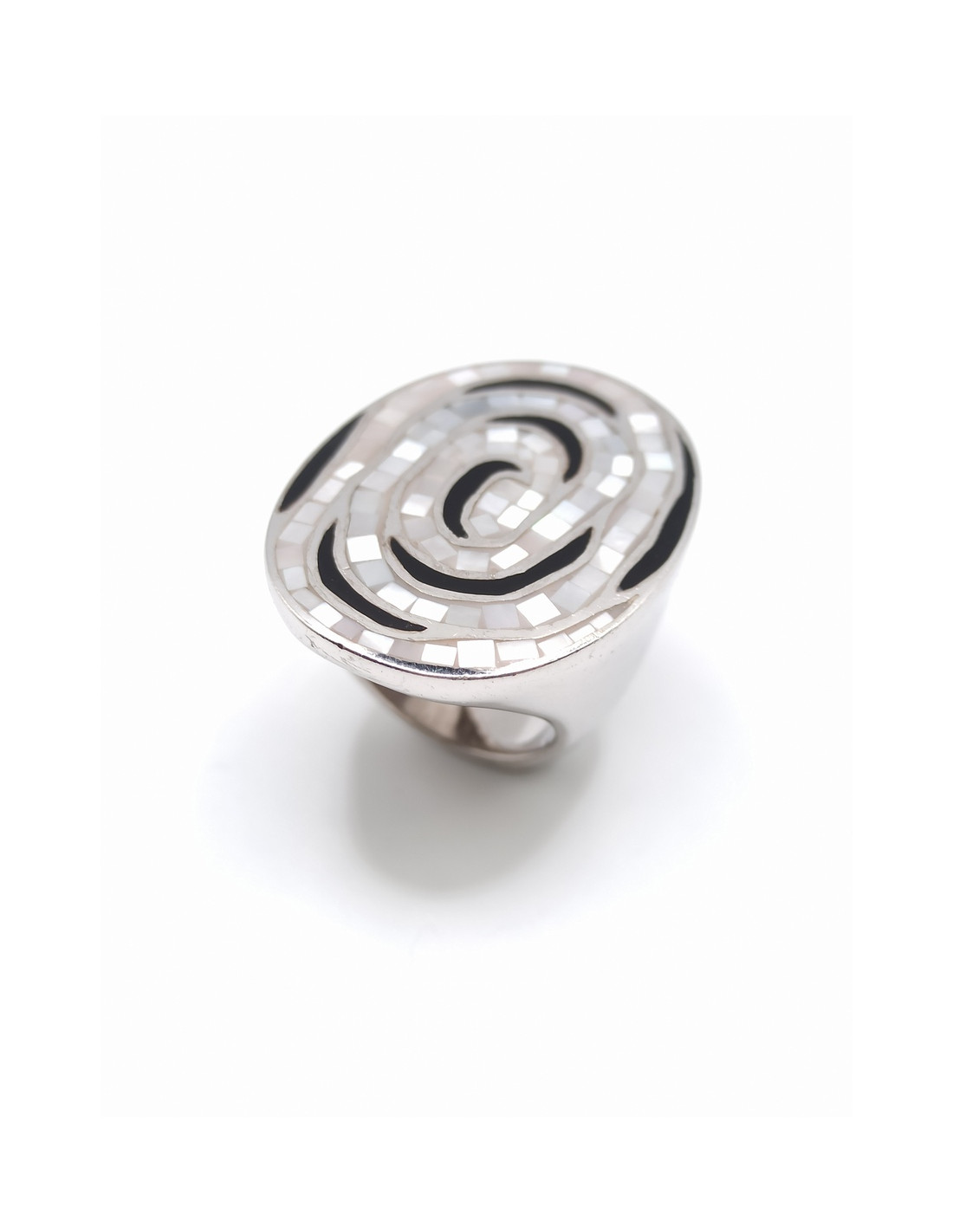 Ασημένιο χειροποίητο δαχτυλίδι, επιπλατινωμένο με φίλντισι και μαύρο σμάλτο.