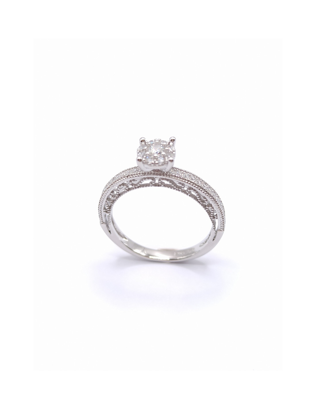 Ασημένιο δαχτυλίδι , το μισό σε μπρονζέ χρώμα, με μαργαριτάρι και Zircon.