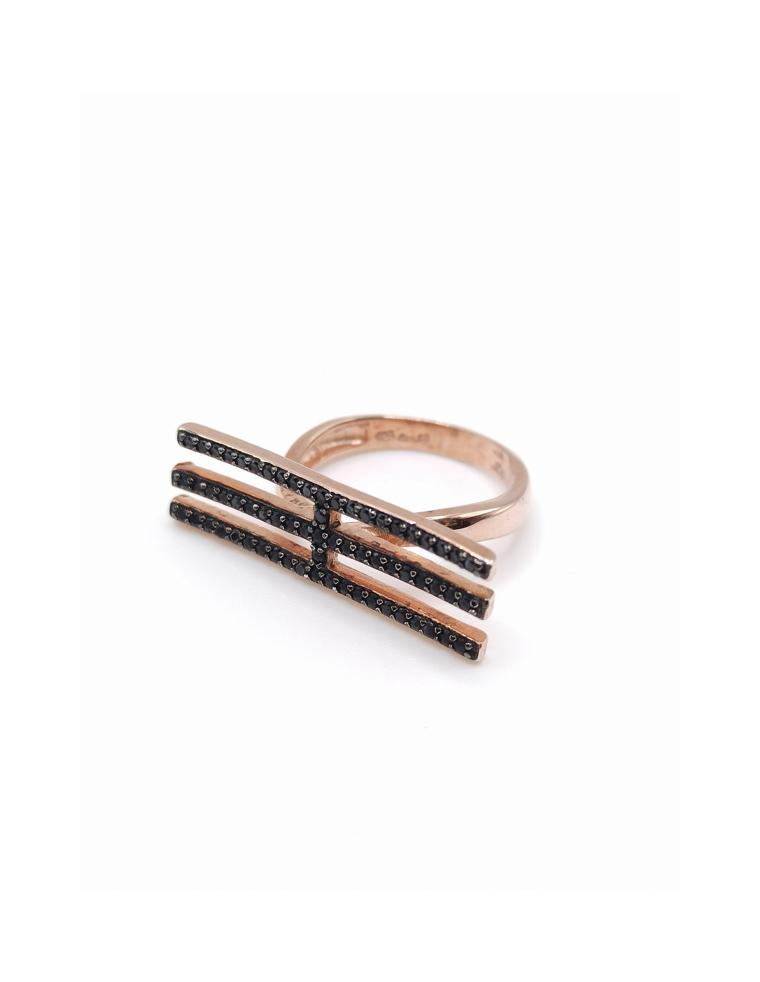 Ασημένιο δαχτυλίδι με ροζ επιχρύσωση και μαύρα ζιργκόν.