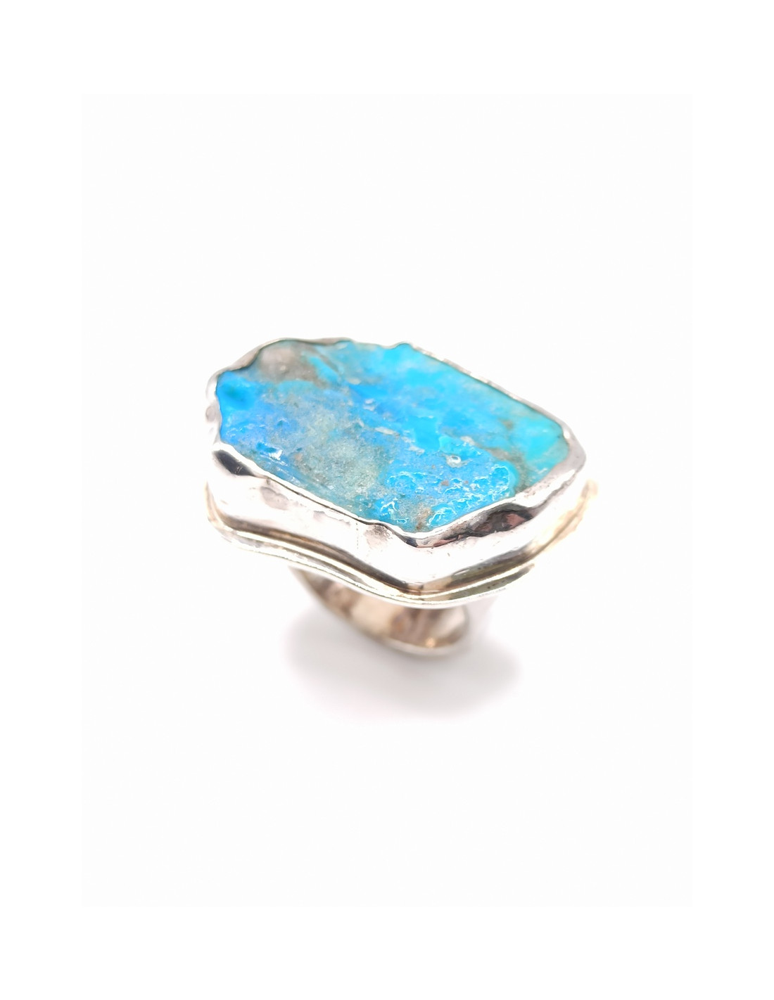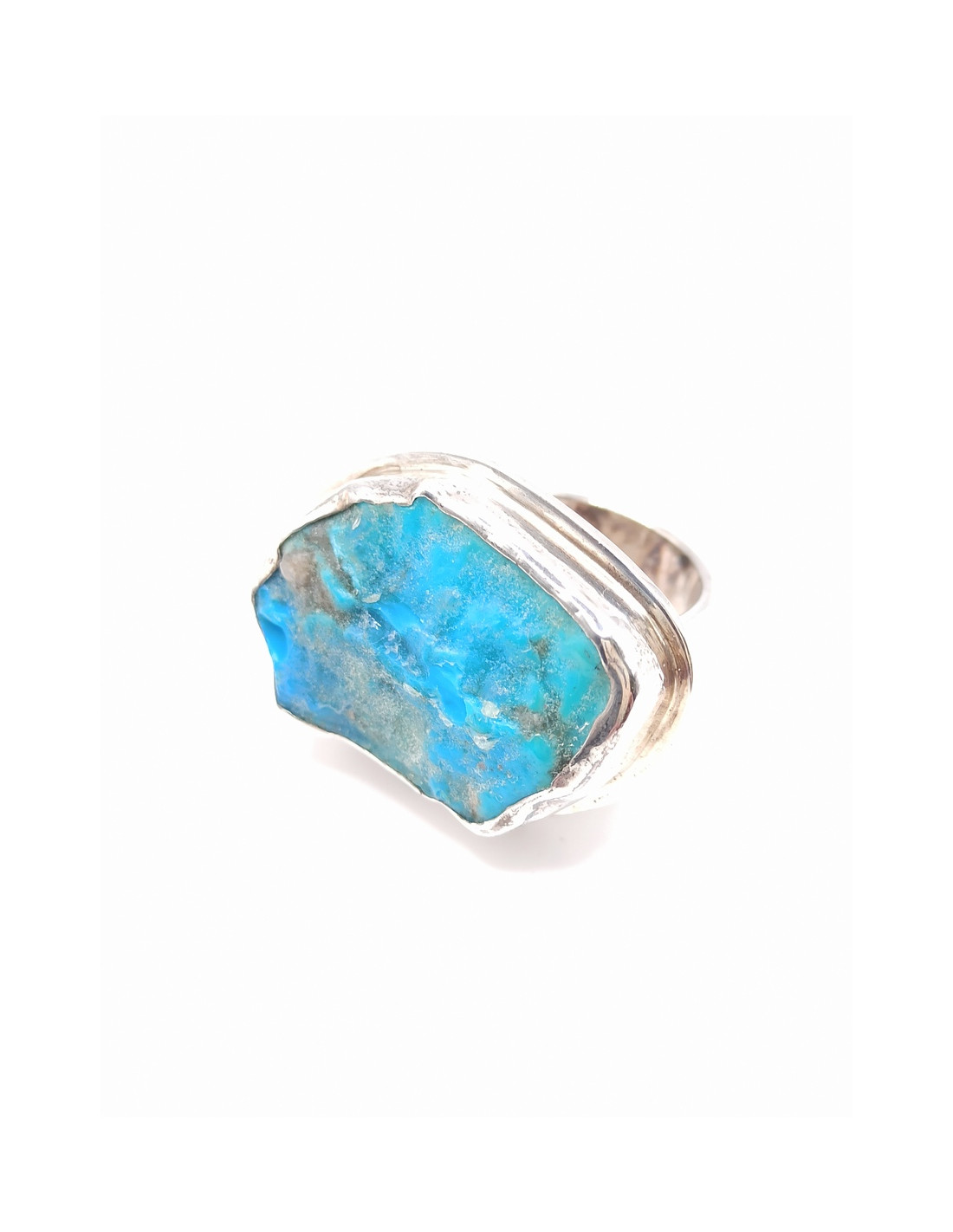 Ασημένιο χειροποίητο δαχτυλίδι με φυσίκη ακατέργαστη πέτρα τυρκουάζ.