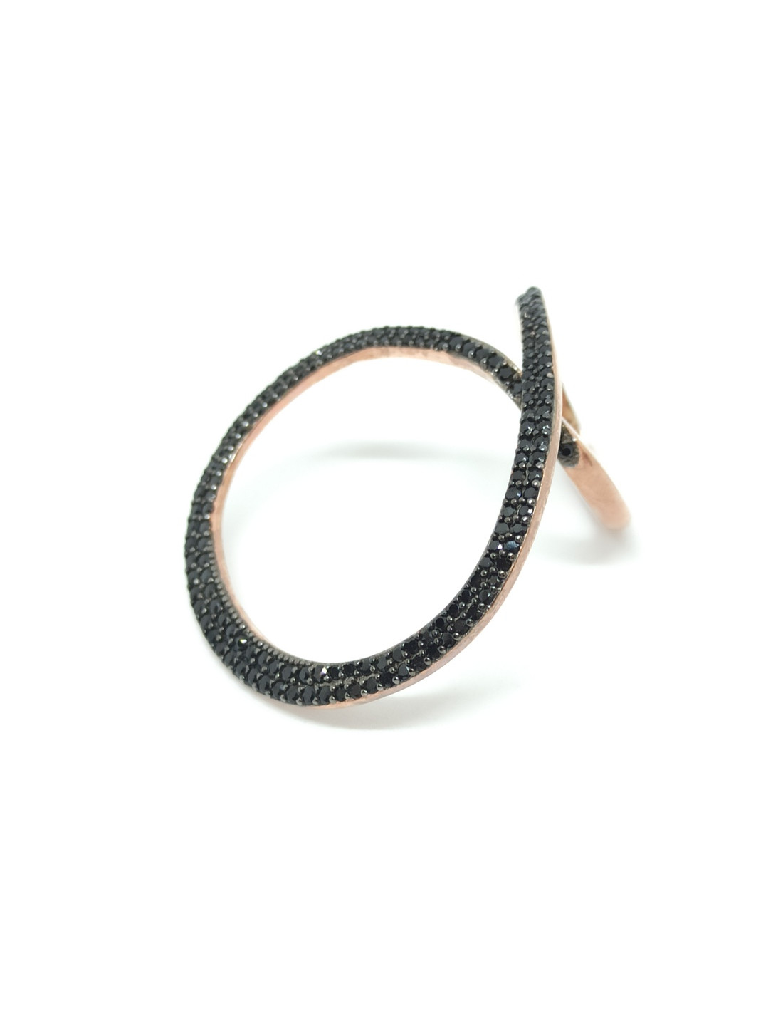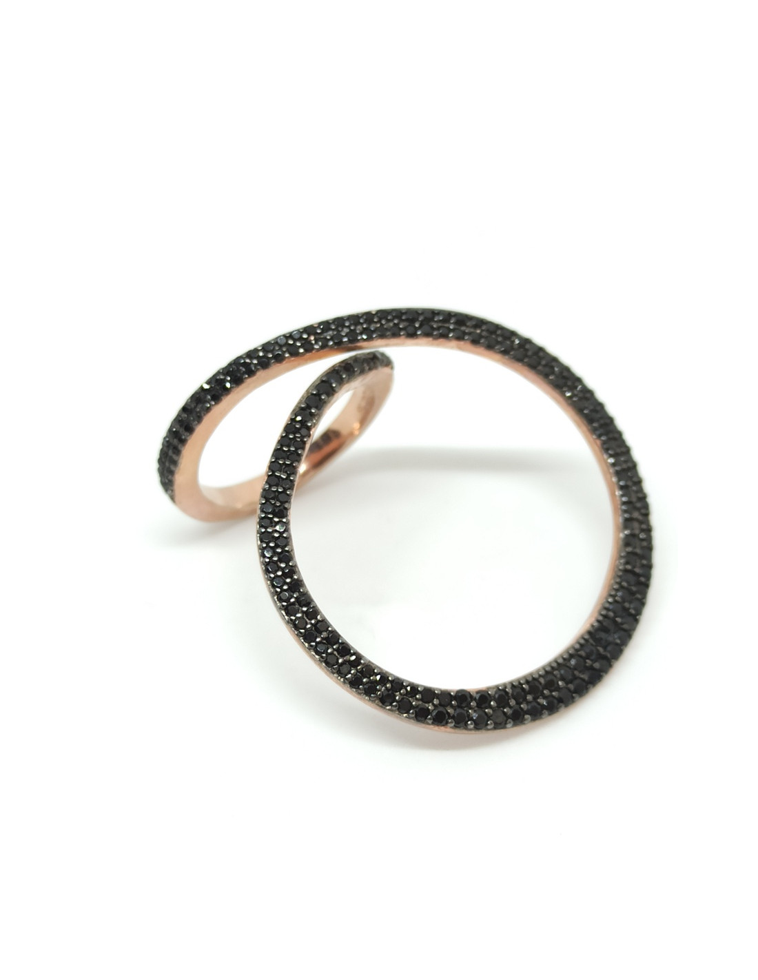 Ασημένιο δαχτυλίδι με ροζ επιχρύσωση και μαύρα ζιργκόν.