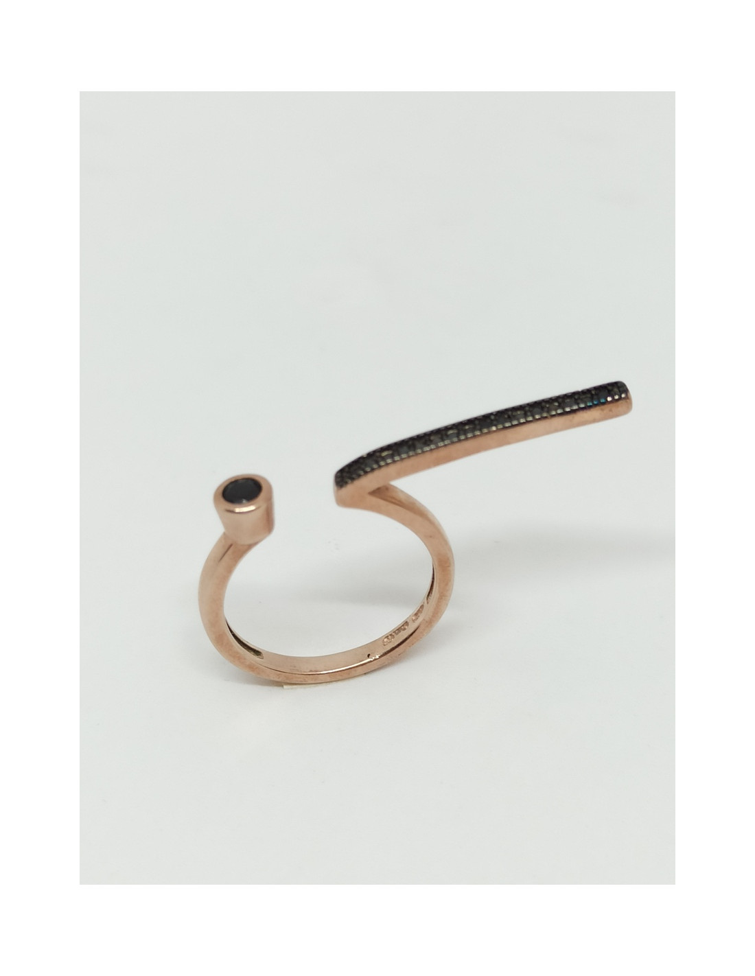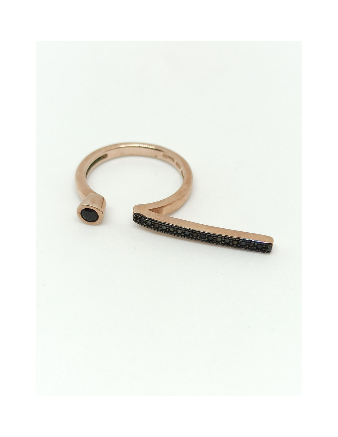 Ασημένιο δαχτυλίδι με ροζ επιχρύσωση και μαύρα ζιργκόν.
