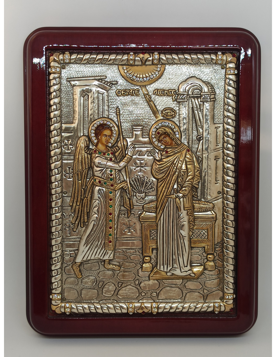Ακριβές αντίγραφο παλαιάς Βυζαντινής εικόνας του Ευαγγελισμού της Θεοτόκου, από ασήμι και χρυσό.