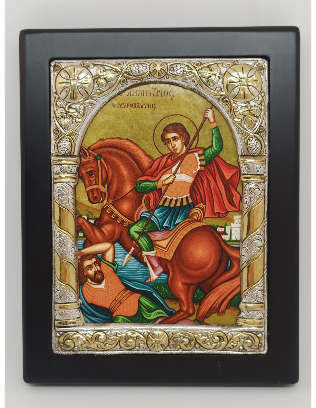 Ασημόχρυση εικόνα του Αγίου Δημητρίου του Μυροβλύτη με παραδοσιακή αγιογραφία.
