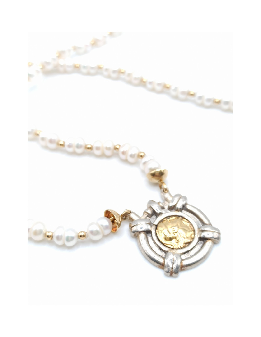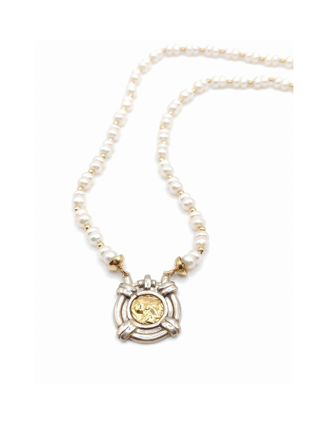 Ασημόχρυσο χειροποίητο κολιέ, αντίγραφο μουσείου, με τον Μ.Αλέξανδρο, με χρυσό 14κ