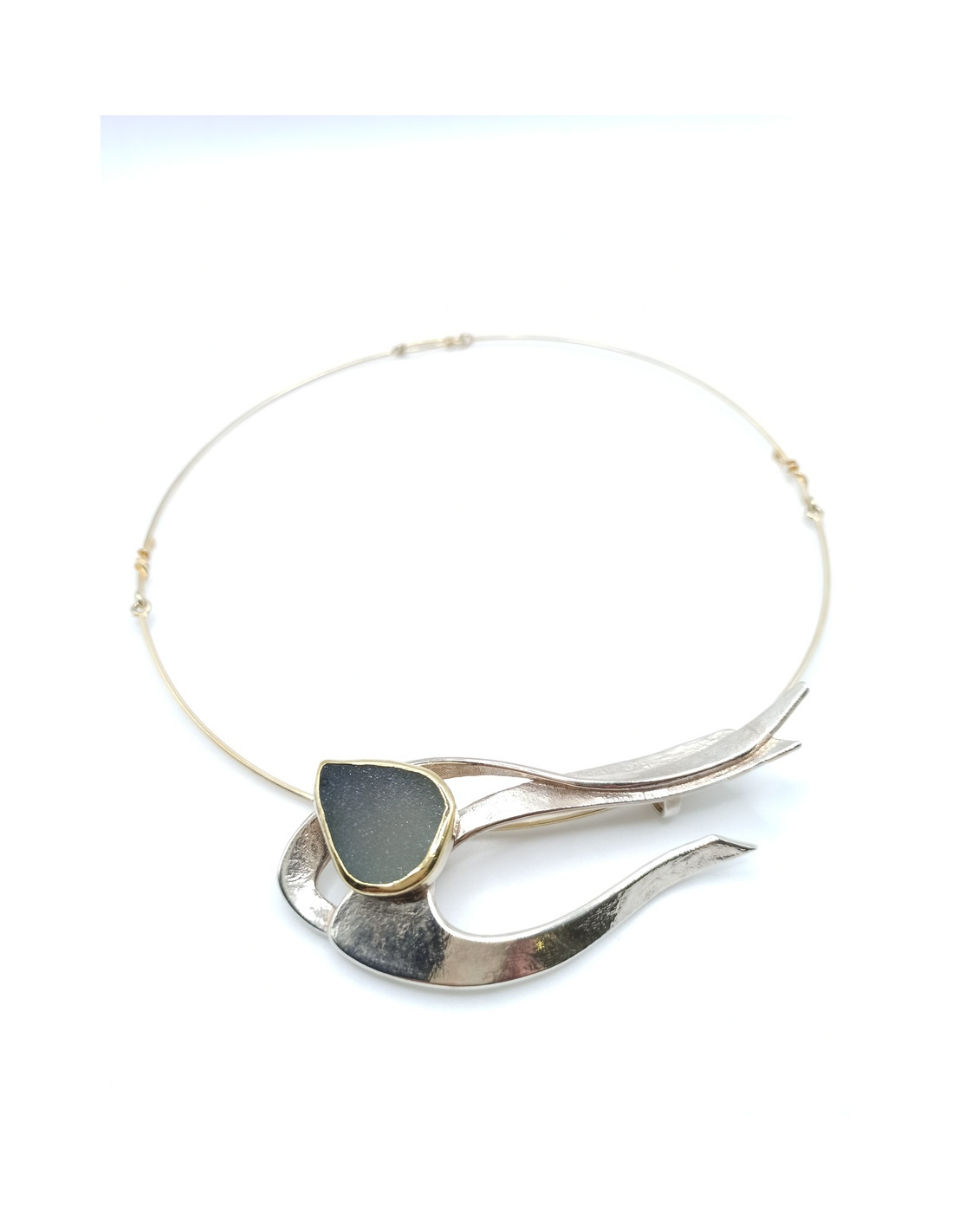 Χειροποιητο κολιέ με χαλαζία, από ασήμι και χρυσό 18 καρατίων.