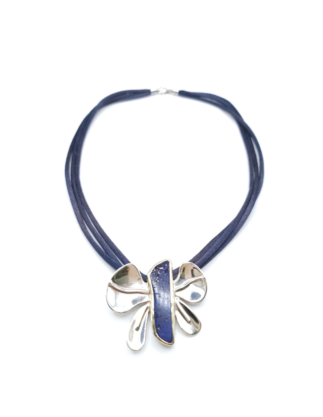 Χειροποιητο κολιέ με Lapis Lazuli, από ασήμι και χρυσό 18 καρατίων.