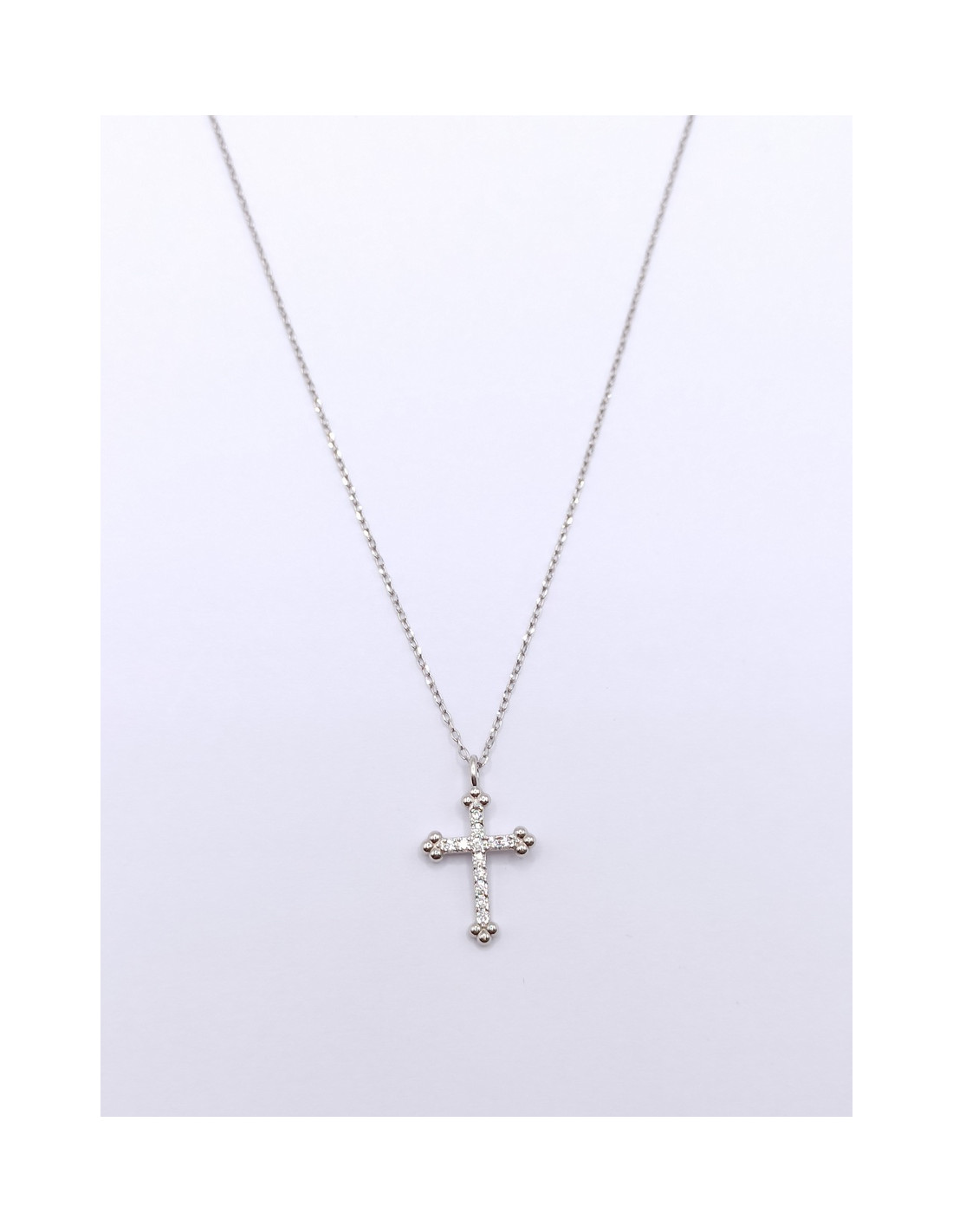 Ασημένιος σταυρός με ζιργκόν και αλυσίδα.