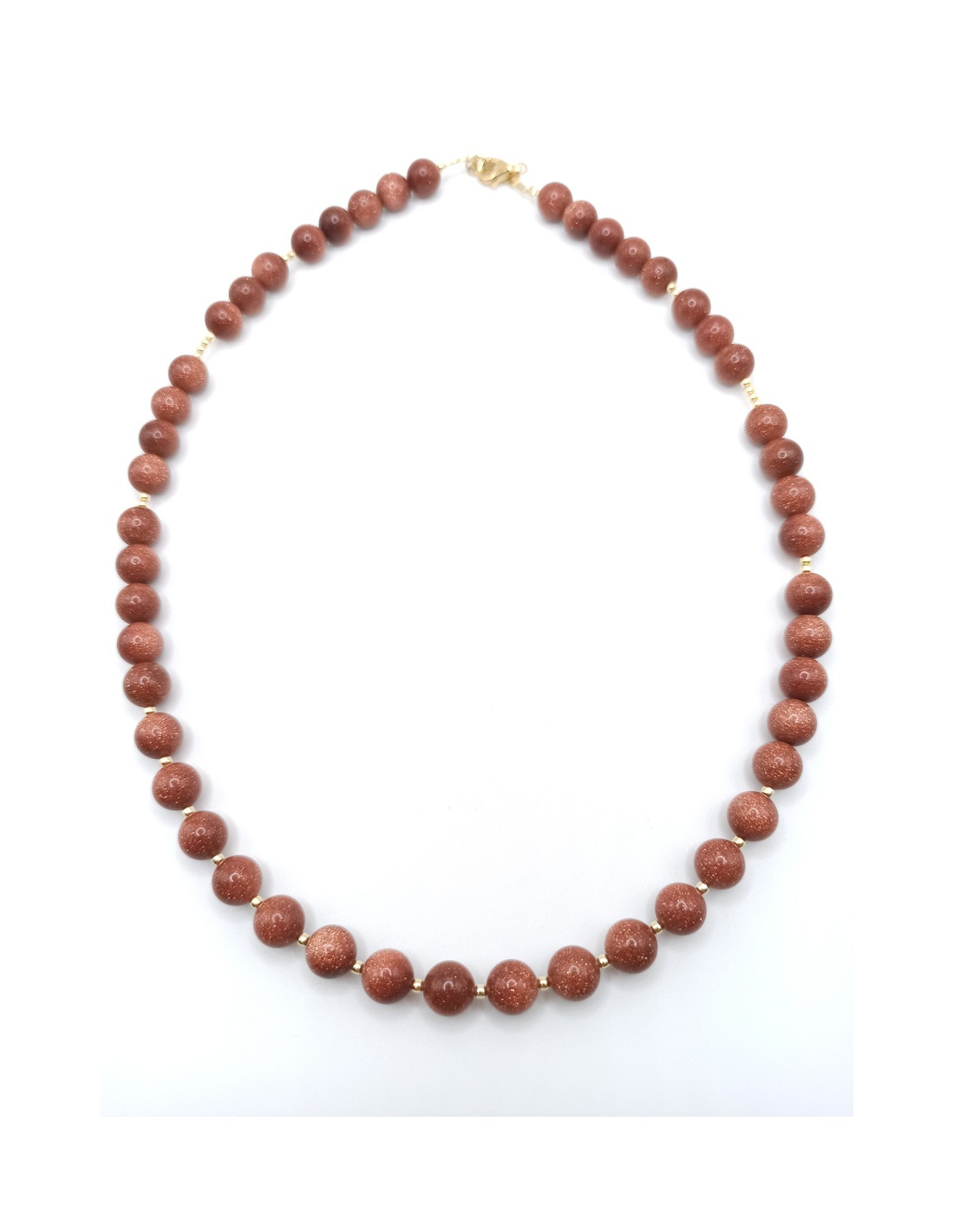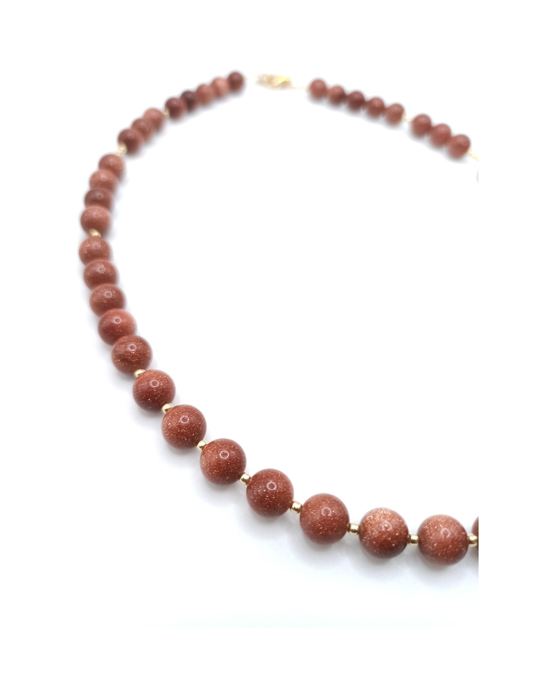 Κολιέ με χάντρες χρυσόλιθου και ασημένιες επιχρυσωμένες λεπτομέρειες.