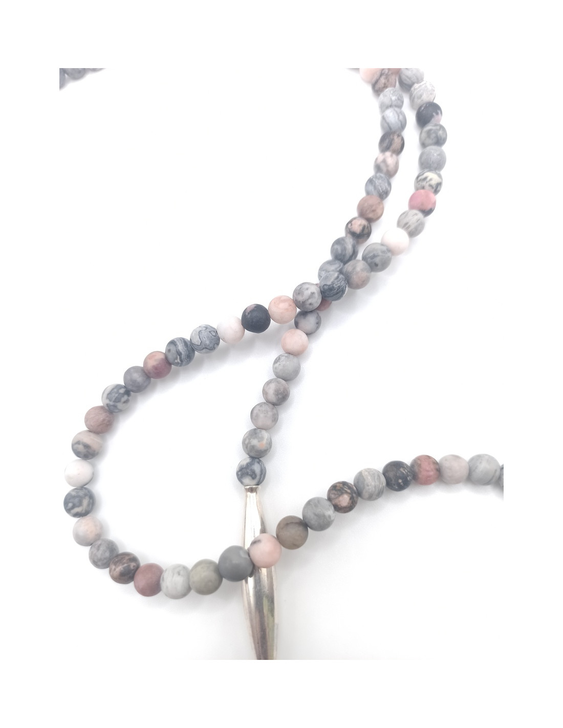 Χειροποίητο μακρύ κολιέ με χάντρες Ίασπις Picasso και λεπτομέρειες από ασήμι.