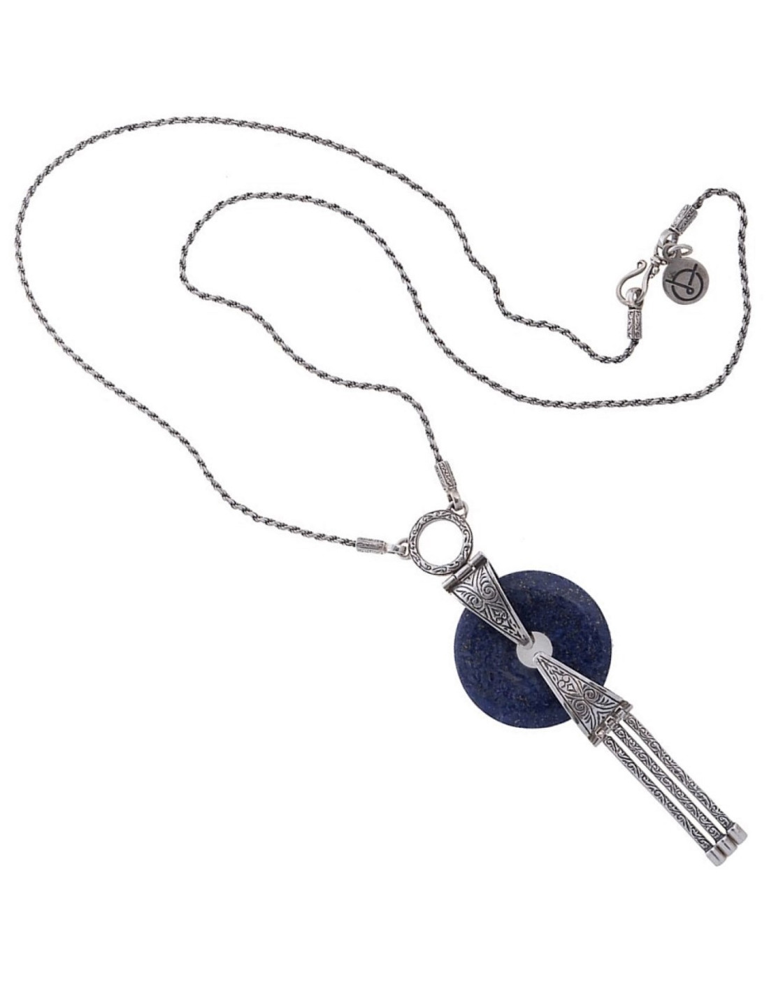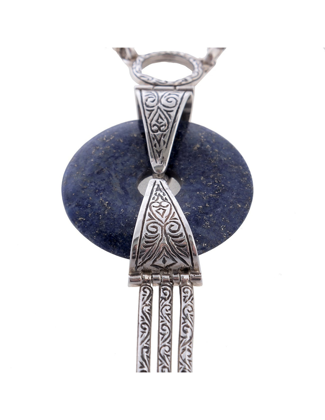 Μακρύ εγχάρακτο κολιέ από ασήμι 925 με Λάπις Λάζουλι donut, "Savati".