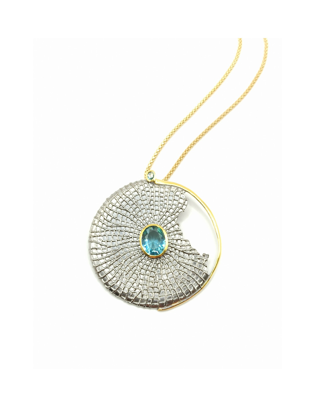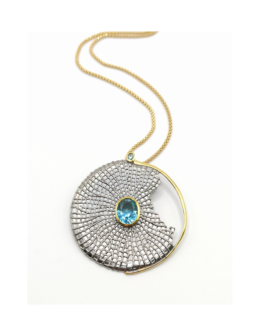 Χειροποίητο ασημένιο κολιέ με επίχρυσες λεπτομέρειες και aqua marine.