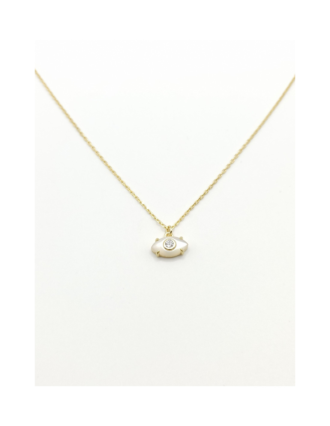 Κολιέ ματάκι από επιχρυσωμένο ασήμι με φίλντισι και ζιργκόν.