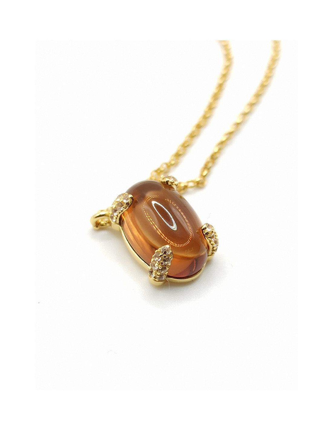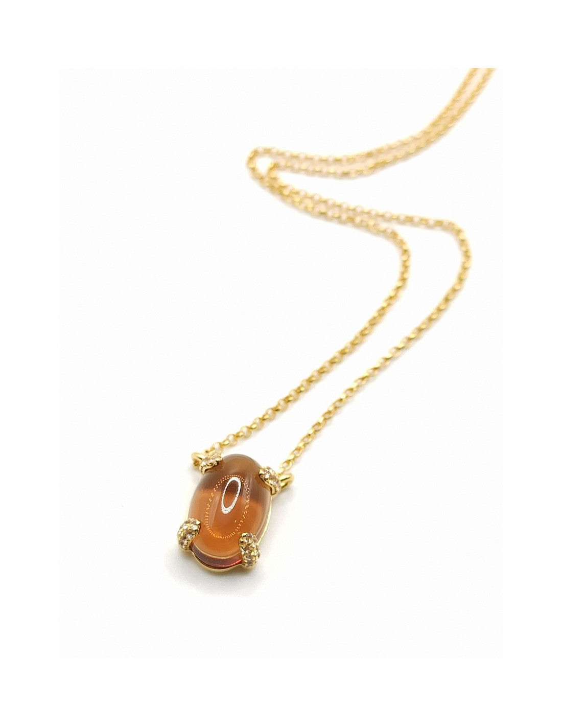 Υπέροχο κολιέ από επιχρυσωμένο ασήμι με cat eye και ζιργκόν.