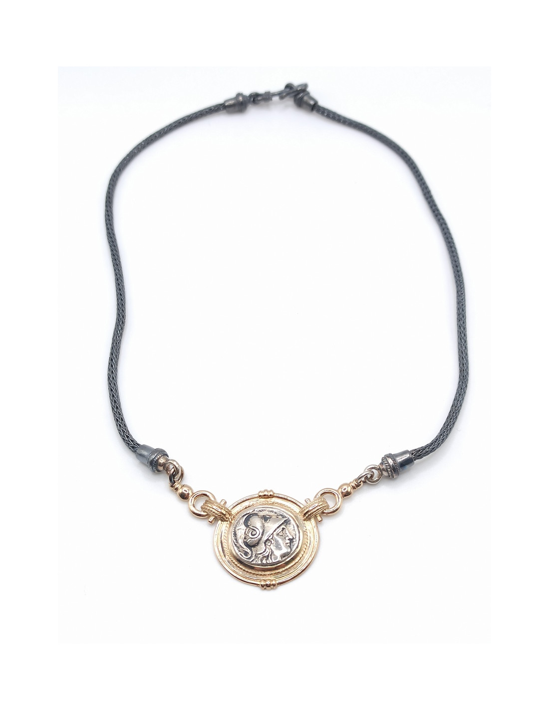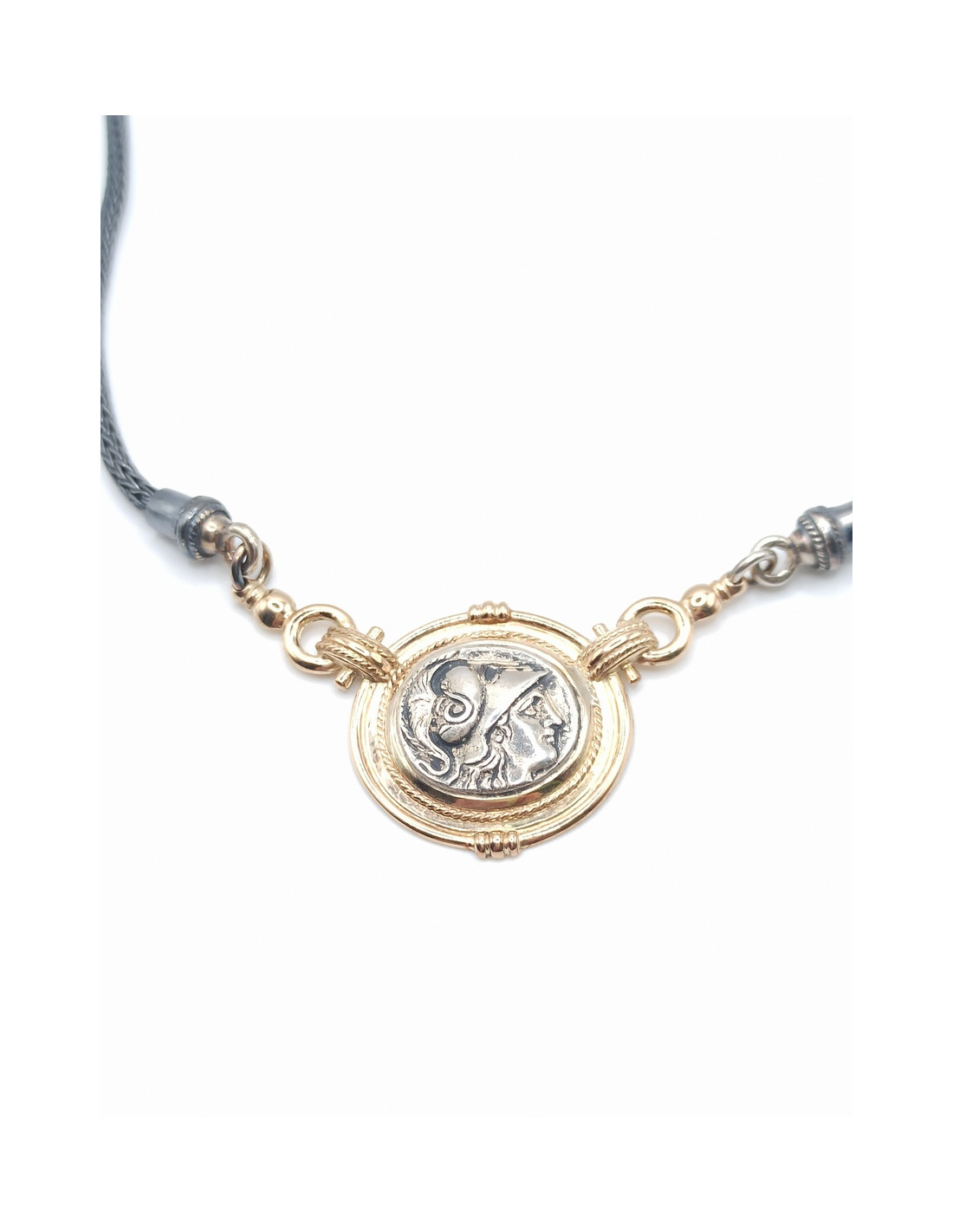 Ασημόχρυσο χειροποίητο κολιέ, αντίγραφο μουσείου, με τον Μ.Αλέξανδρο, με χρυσό 14κ