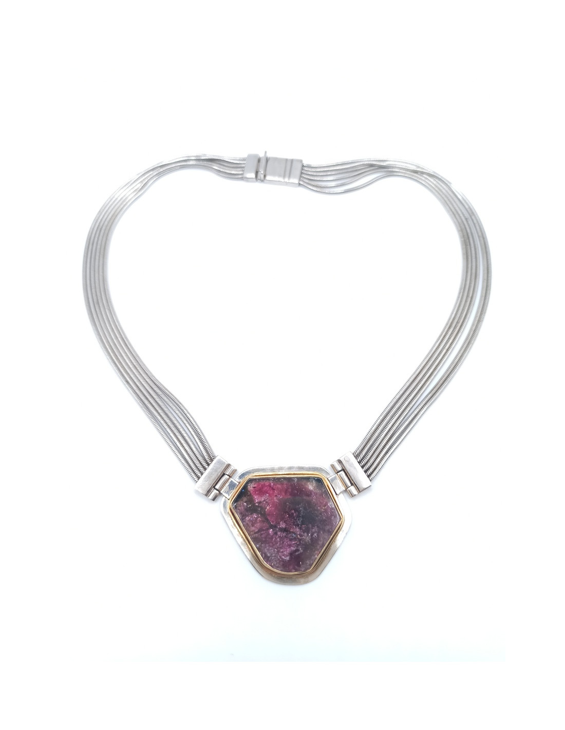 Ασημένιο χειροποίητο δαχτυλίδι με ακατέργαστη τουρμαλίνη.