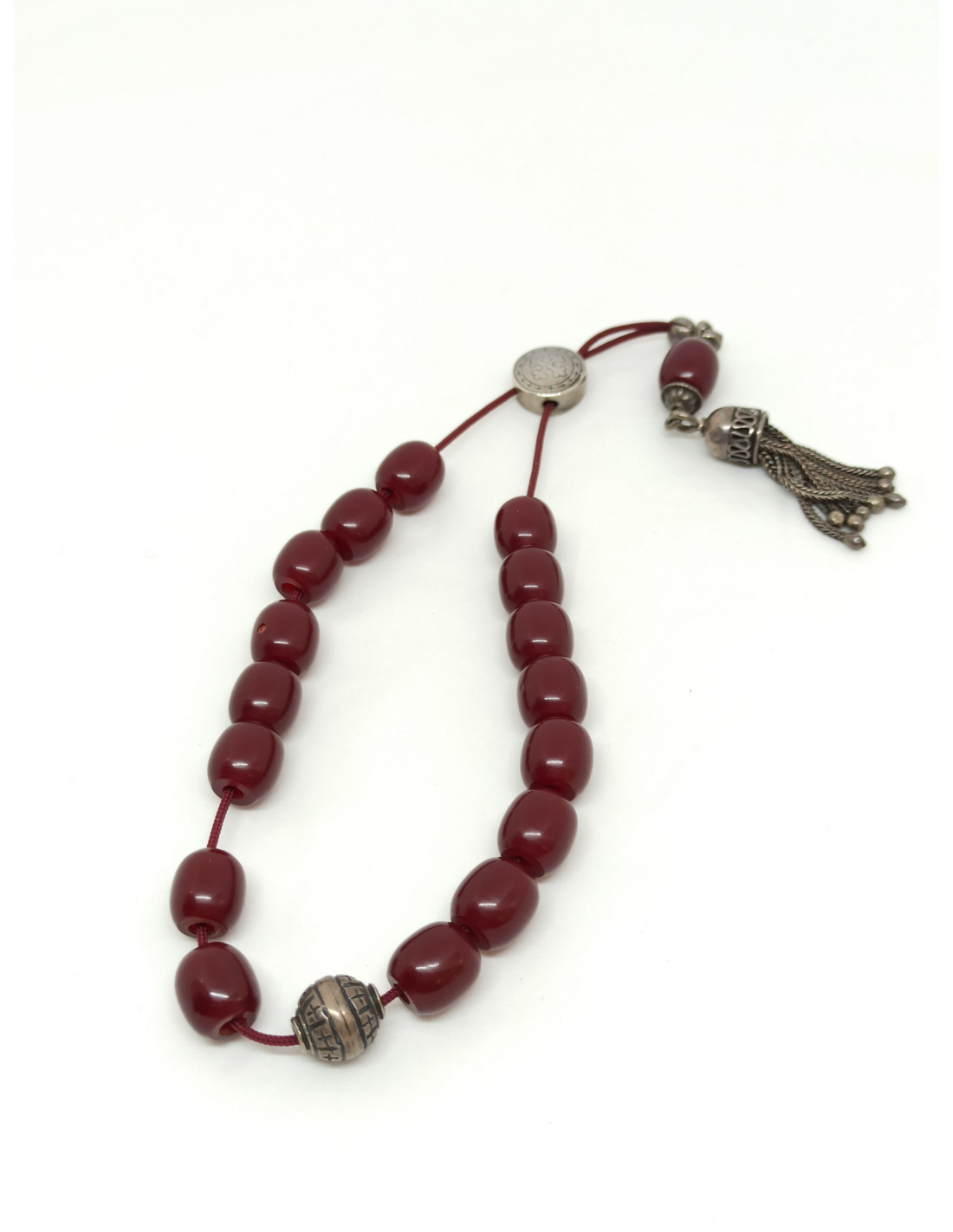 Χειροποίητο κομπολόι από ασήμι 925, με φυσικό κεχριμπάρι.