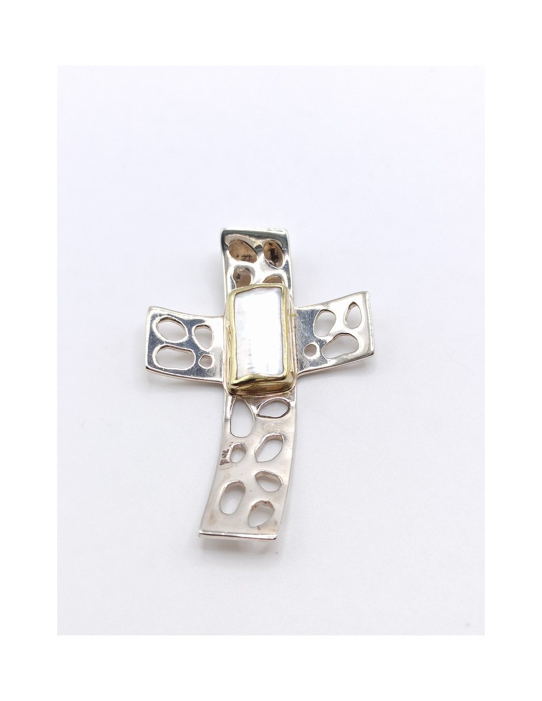 Ασημόχρυσος χειροποίητος σταυρός με κορνεόλη και χρυσό 18 καρατίων.