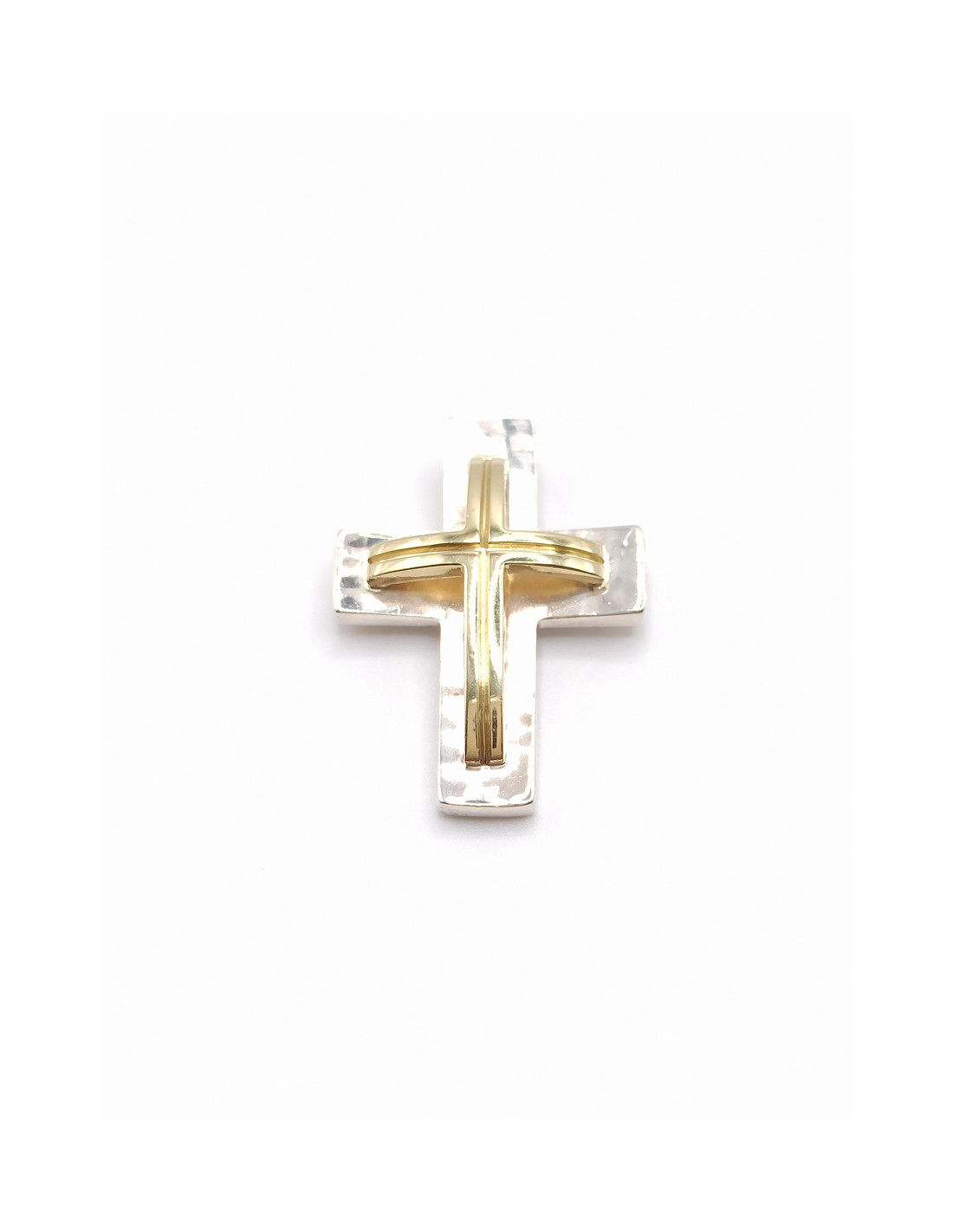 Ασημόχρυσος ματ χειροποίητος σταυρός με χρυσό 18 καρατίων.