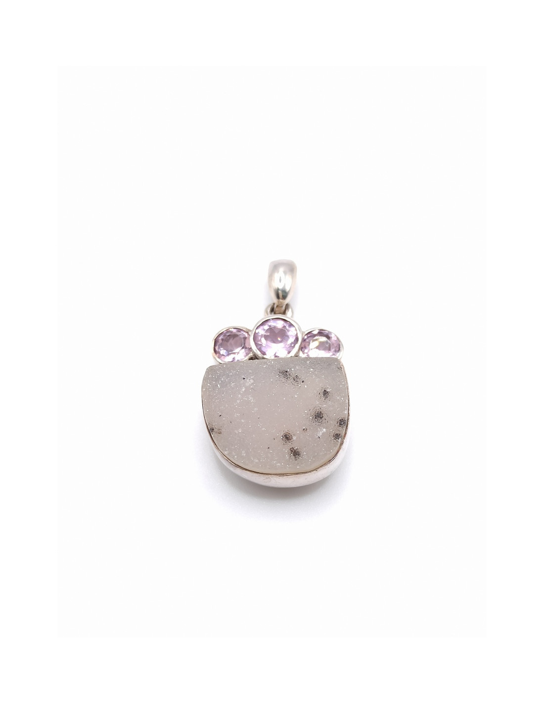 Ασημένιο χειροποίητο κρεμαστό με χαλαζία και ζιργκόν.