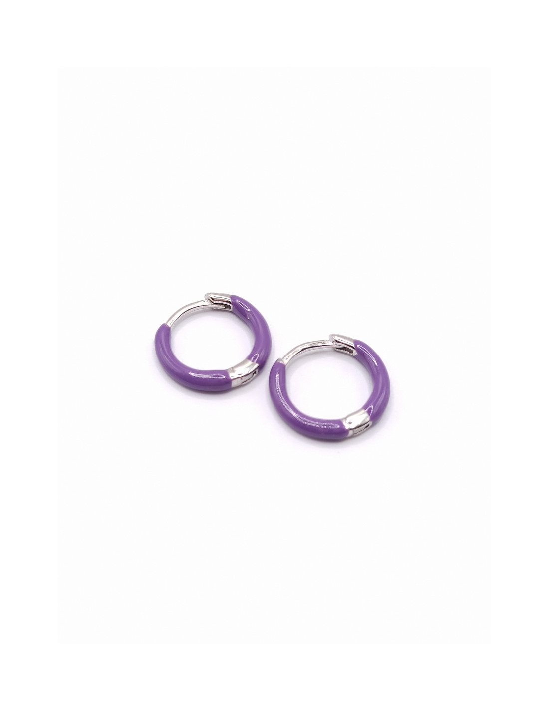 Ασημένια κρικάκια με μωβ σμαλτο.