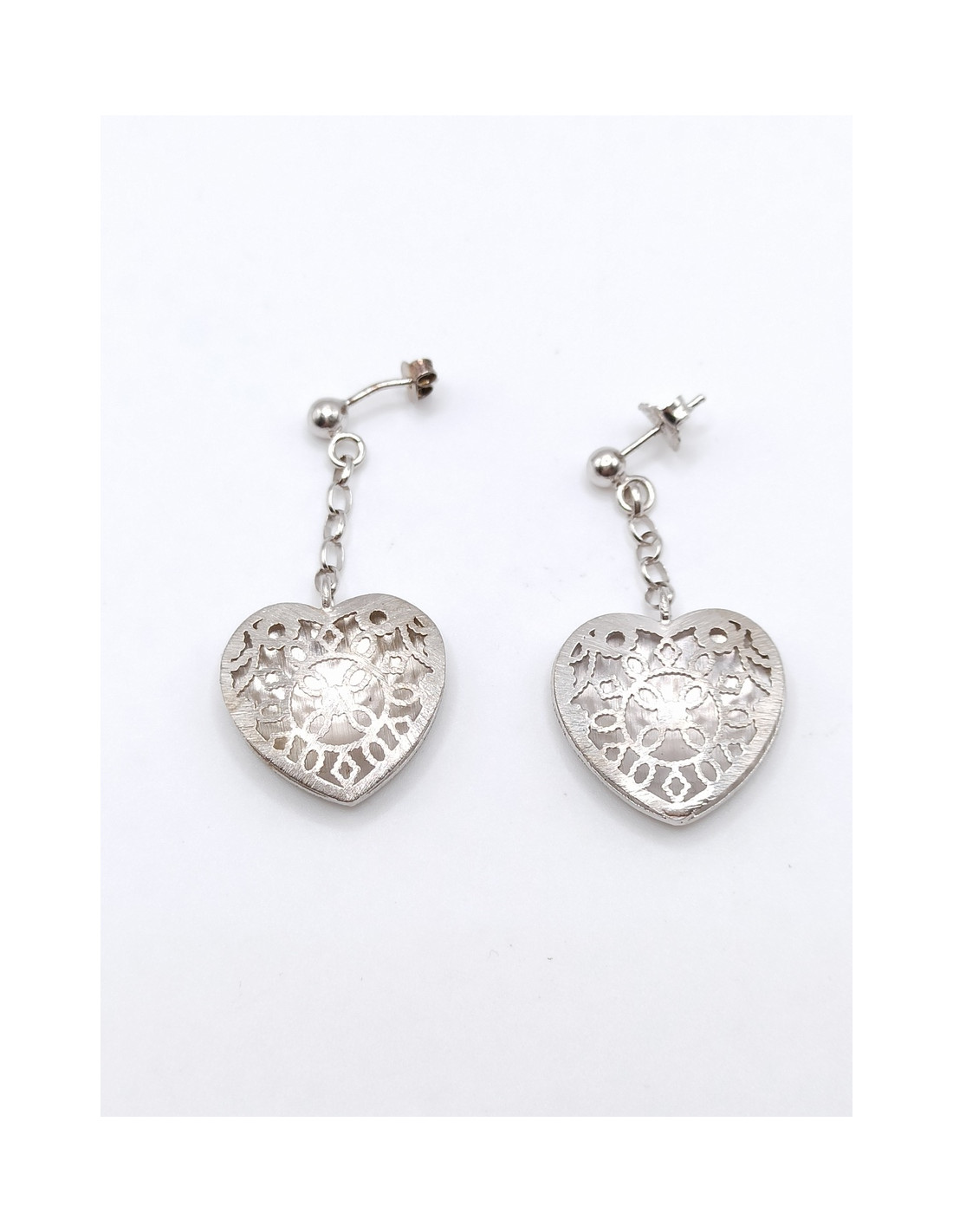 Ασημένια ματ Ιταλικά σκουλαρίκια σε σχέδιο διάτρητης καρδιάς.