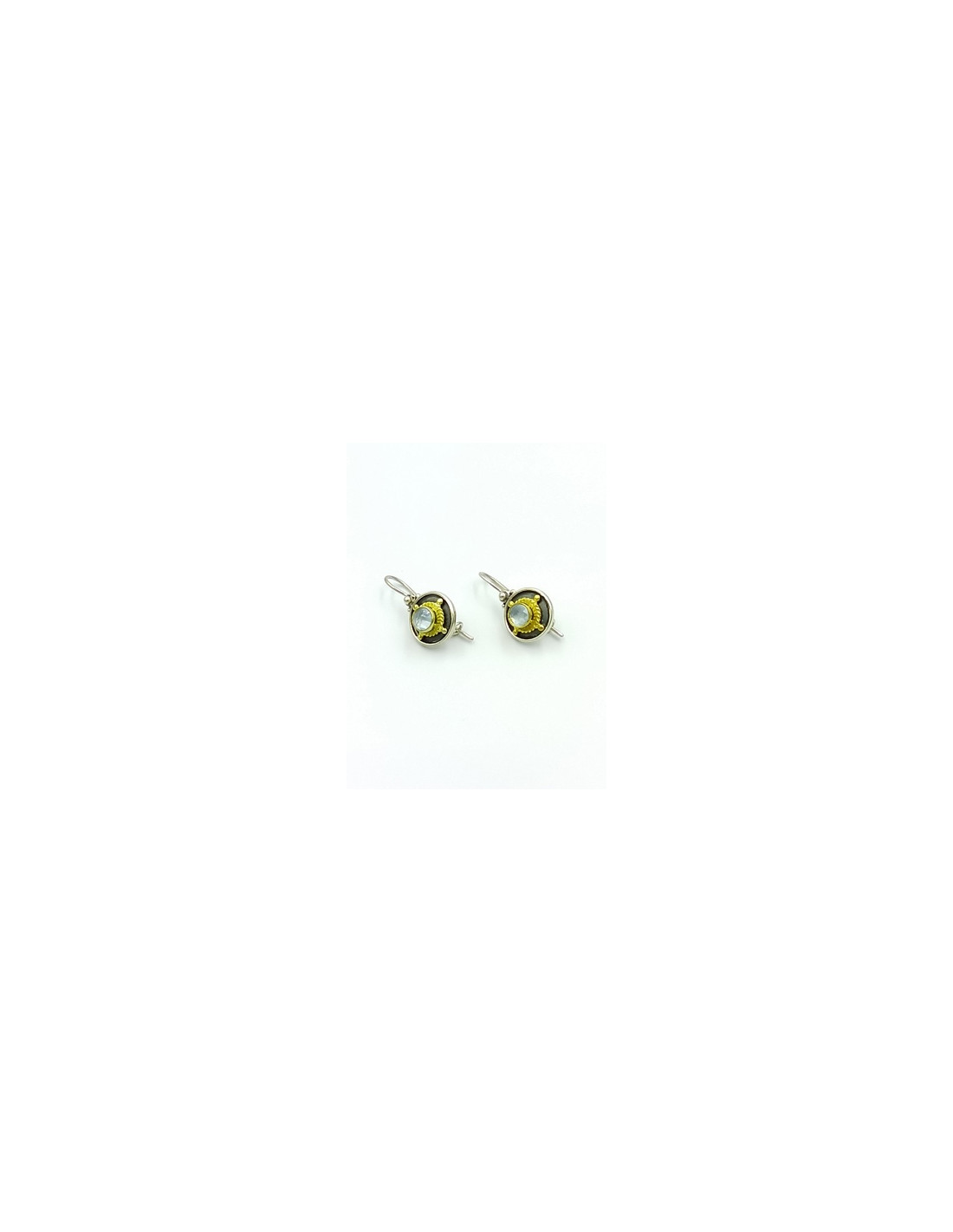 Χειροποίητα σκουλαρίκια από ασήμι 925 με επίχρυσες λεπτομέρειες και μπλε τοπάζι ταγιέ, "Savati".