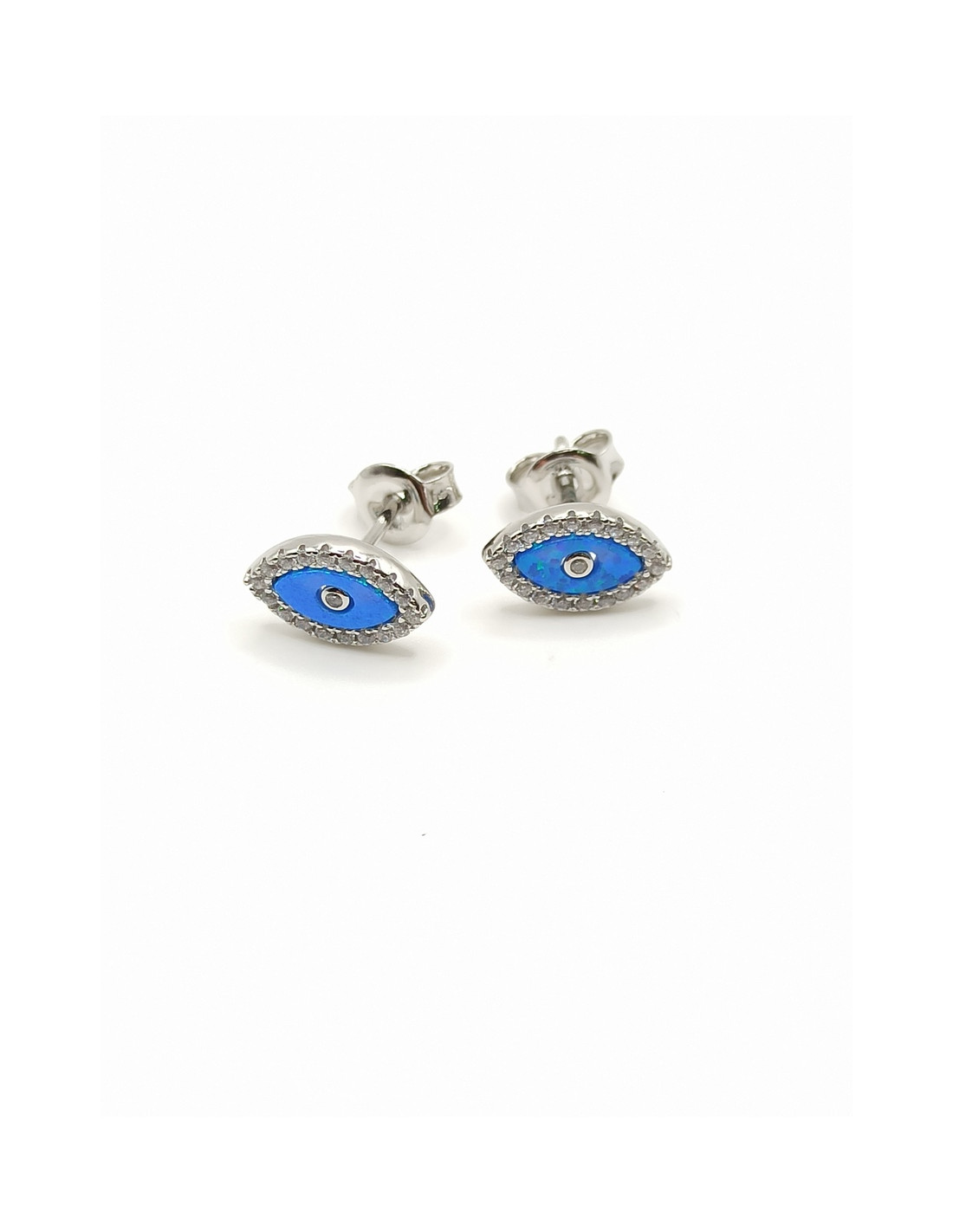 Ασημένια σκουλαρίκια καρφάκια με τυρκουάζ ματάκια και ζιργκόν.