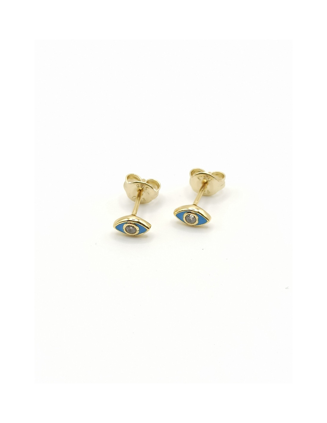 Ασημένια επίχρυσα σκουλαρίκια ματάκια με σμάλτο και ζιργκόν.