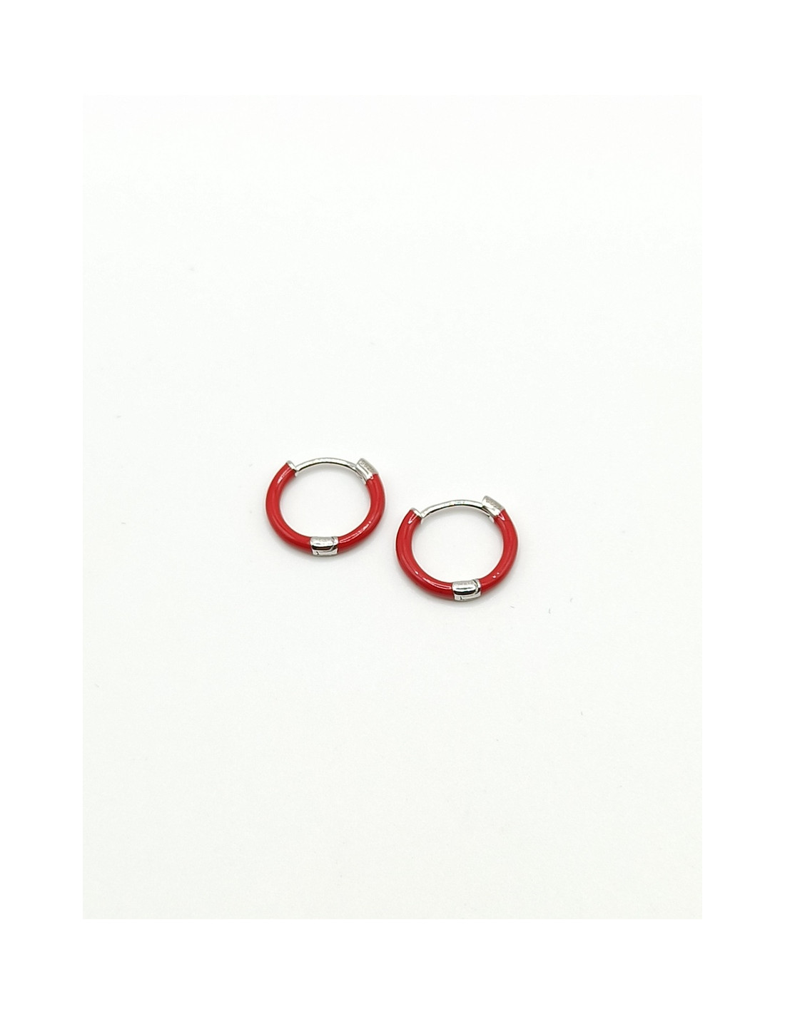 Ασημένια κρικάκια με κόκκινο σμάλτο.