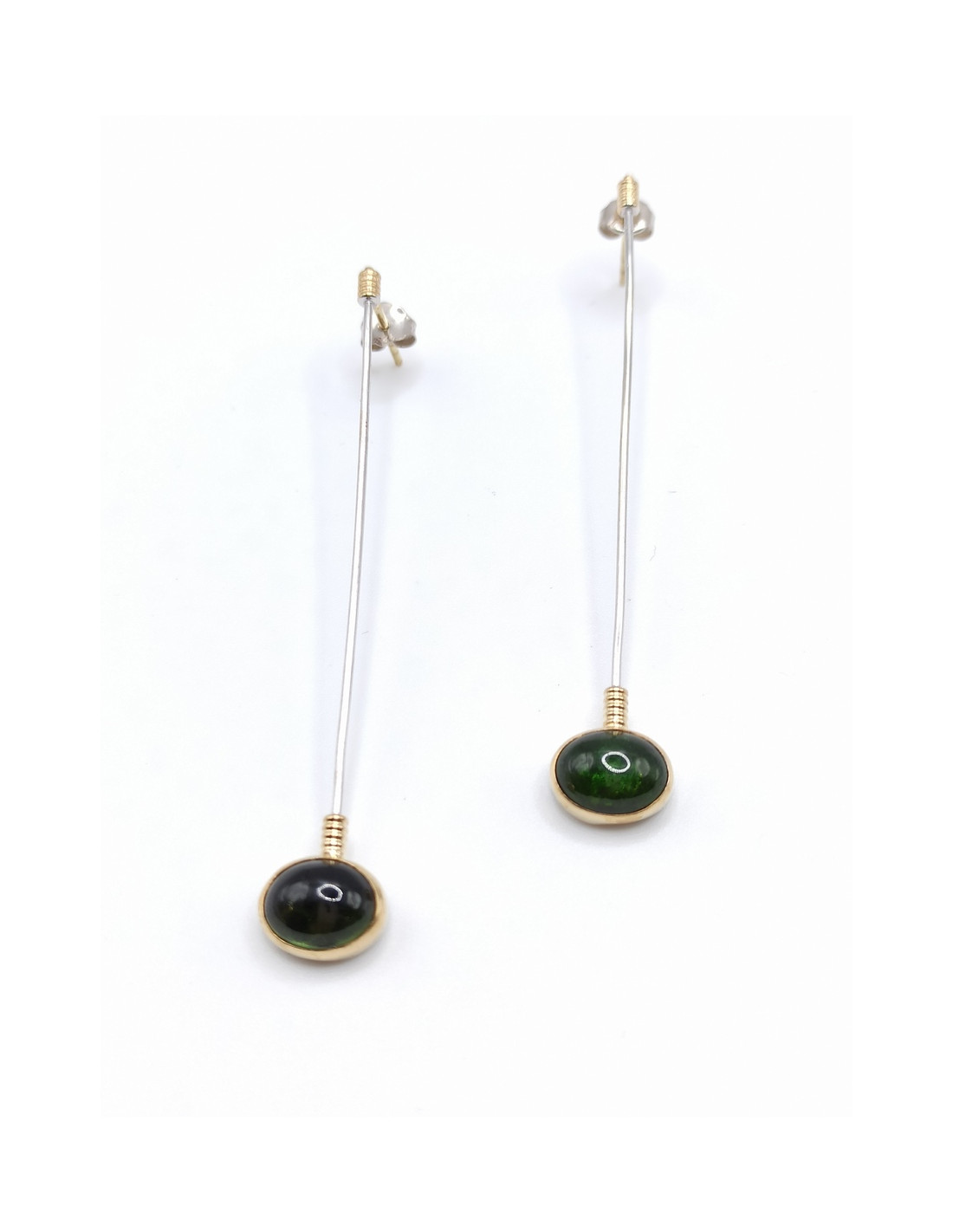 Ασημόχρυσα χειροποίητα μακριά σκουλαρίκια με χρυσό 18κ και τουρμαλίνη καπουσόν.