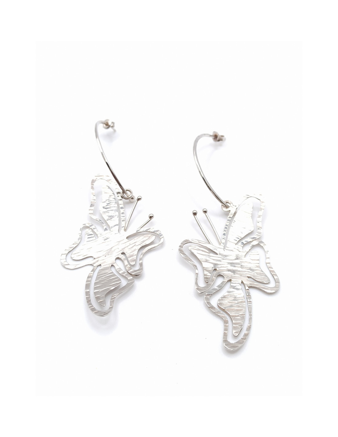 Ασημένια μεγάλα σκουλαρίκια σε σχήμα πεταλούδας.
