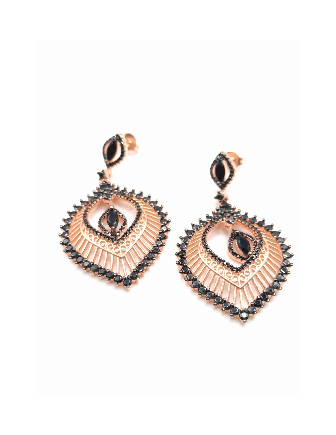 Ασημένια ροζ επιχρυσωμένα σκουλαρίκια, με μαύρους ημιπολύτιμους λίθους.