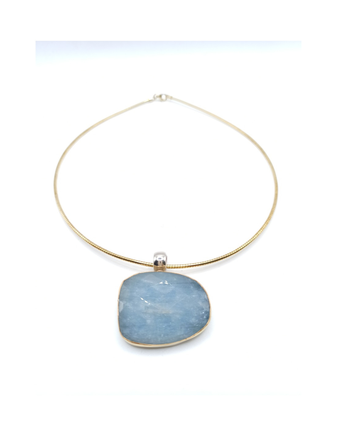 Silver gold handmade ring with Aqua Marine stone and 18k gold.