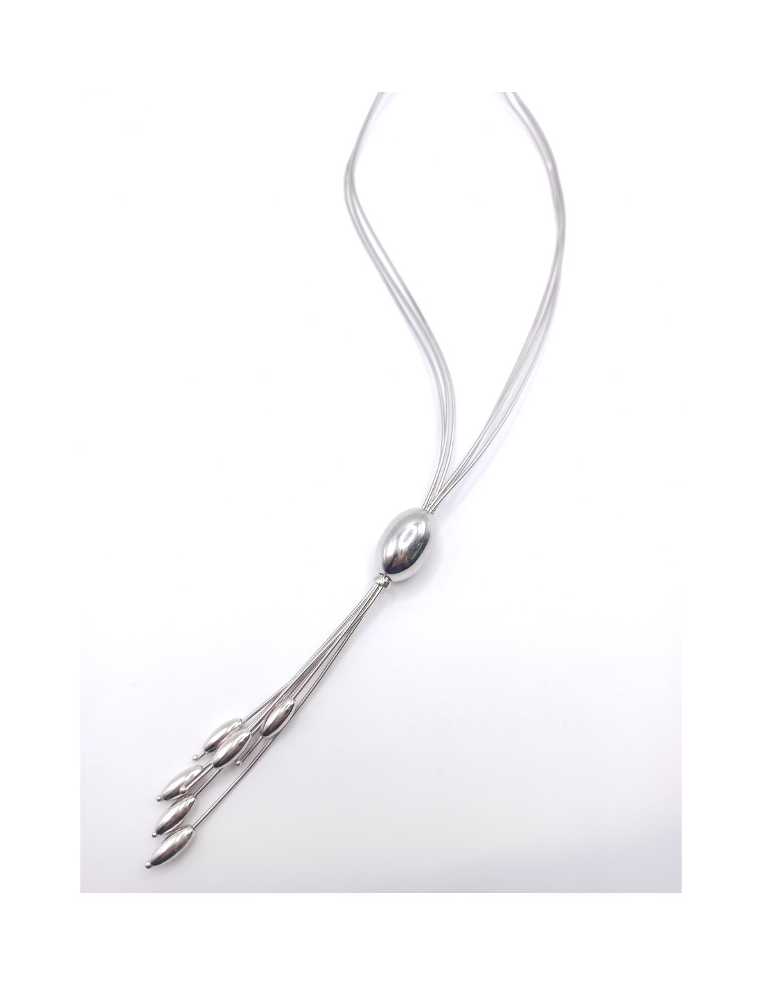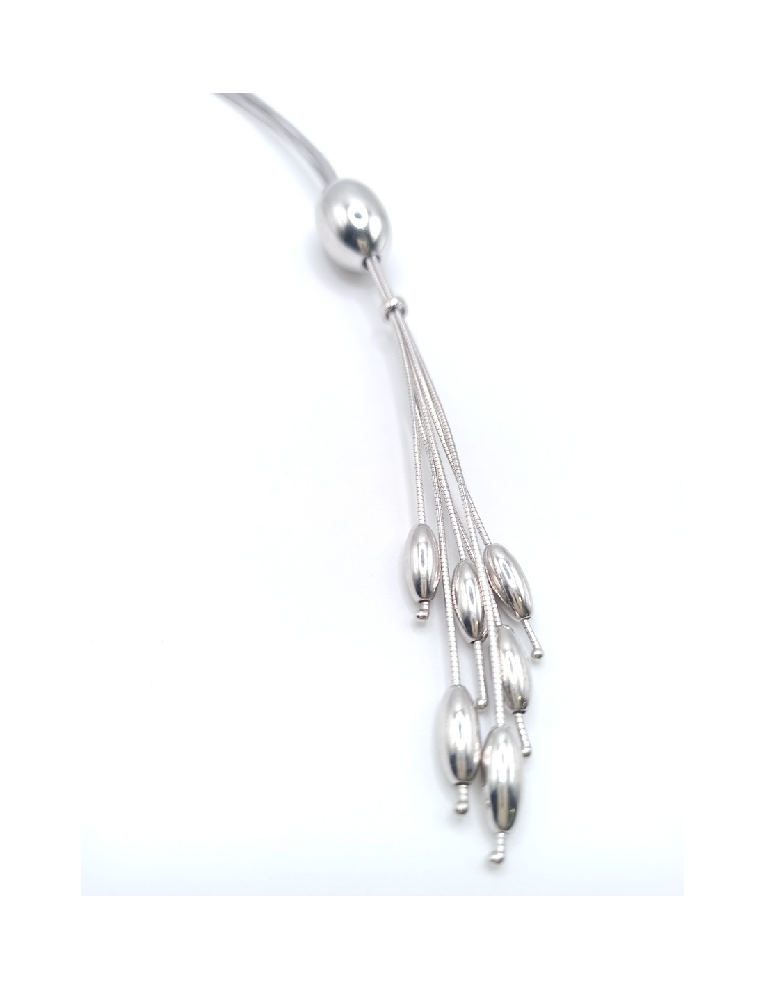 Silver long necklace.