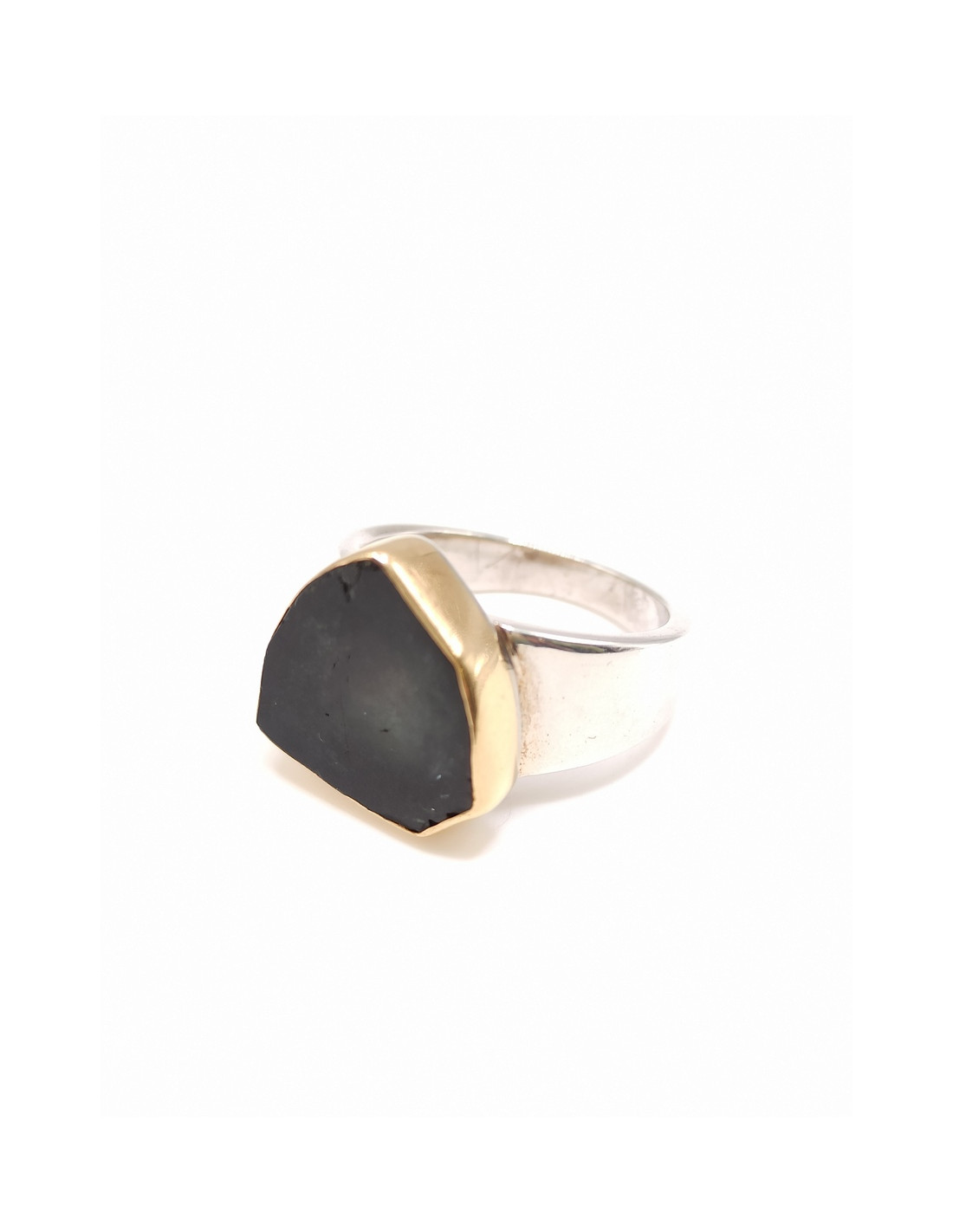 Silver gold handmade ring with tourmaline and 22k gold "Savati".