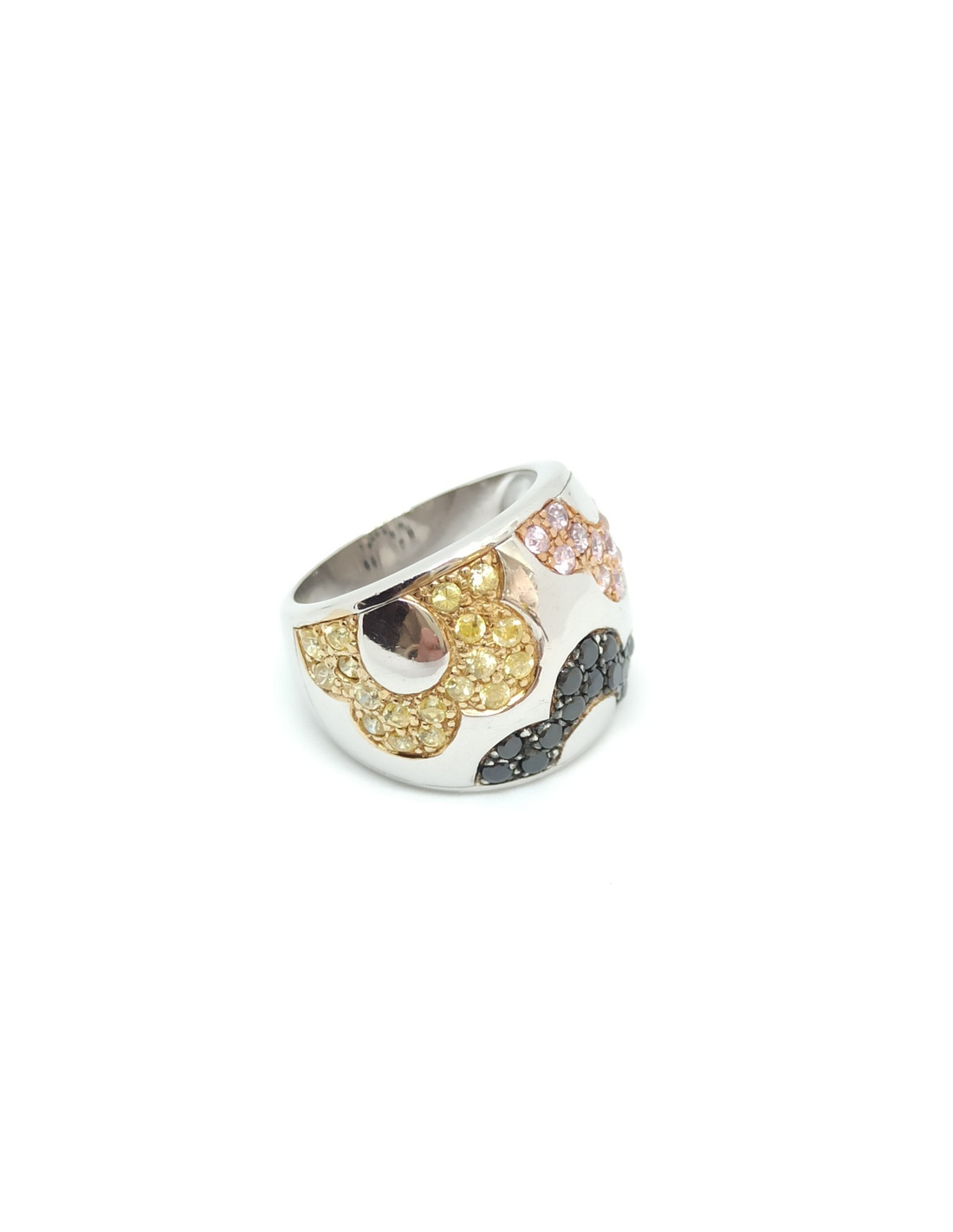 Handmade Sterling Silver and Platinum Ring with Colored Zircons that Form Flowers.